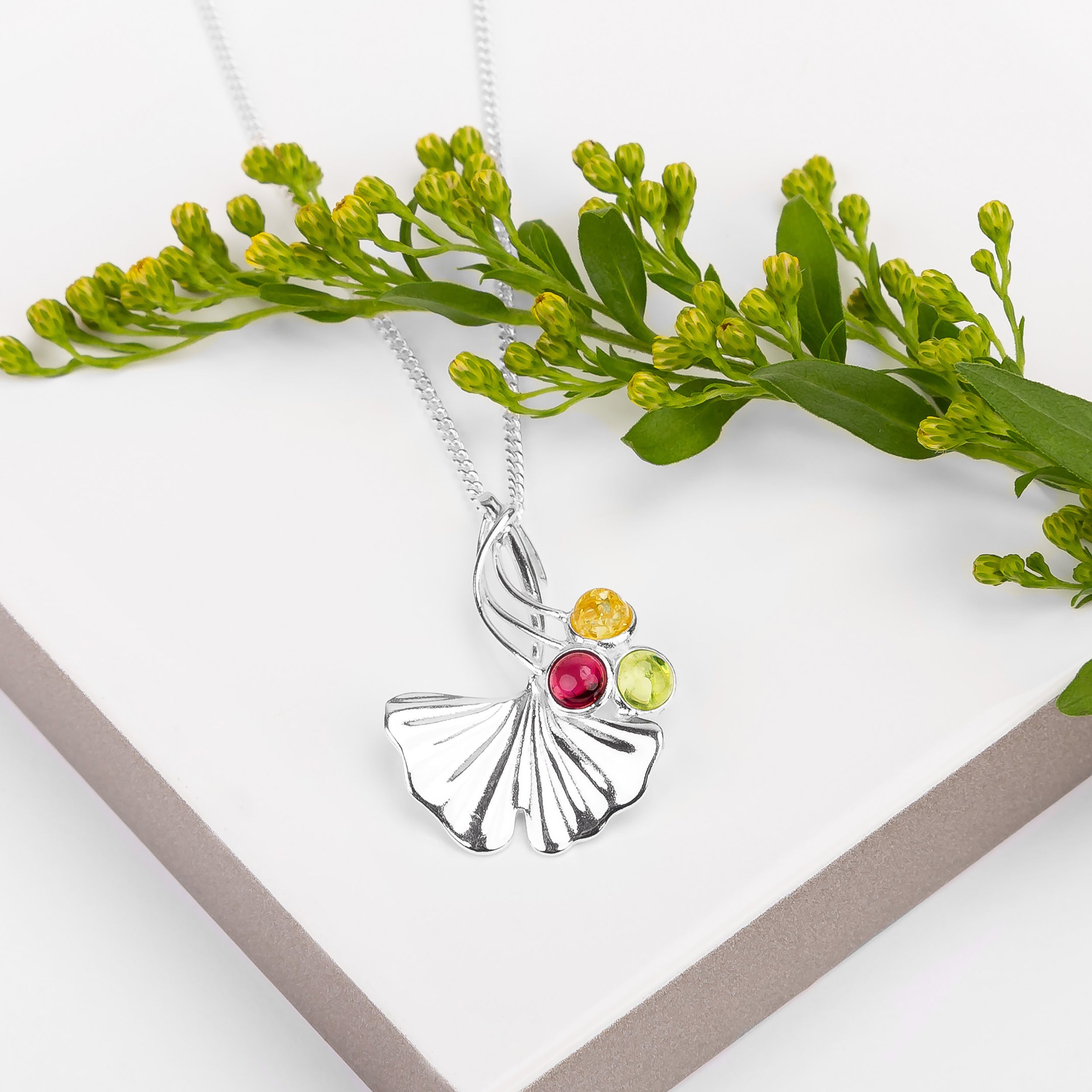 Inspired by oriental nature, our Silver and Peridot, Garnet and Citrine Ginkgo Flower Necklace is a wonderful tribute to this much loved plant.