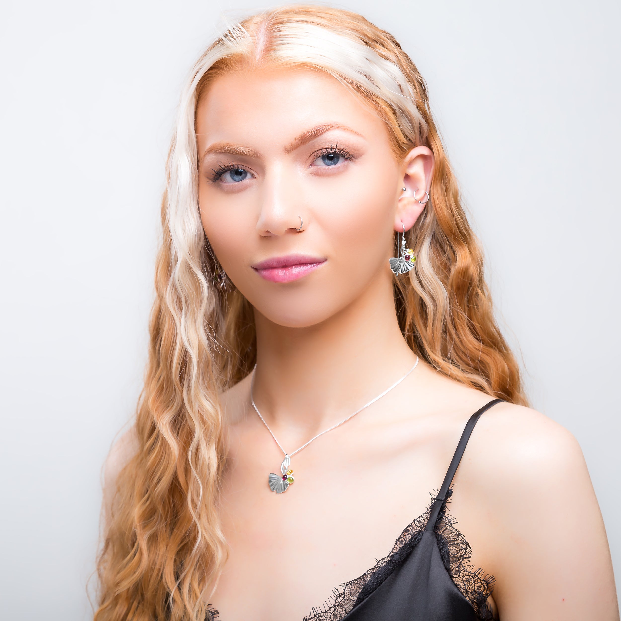 Ginkgo Flower Necklace in Silver & Peridot, Garnet and Citrine