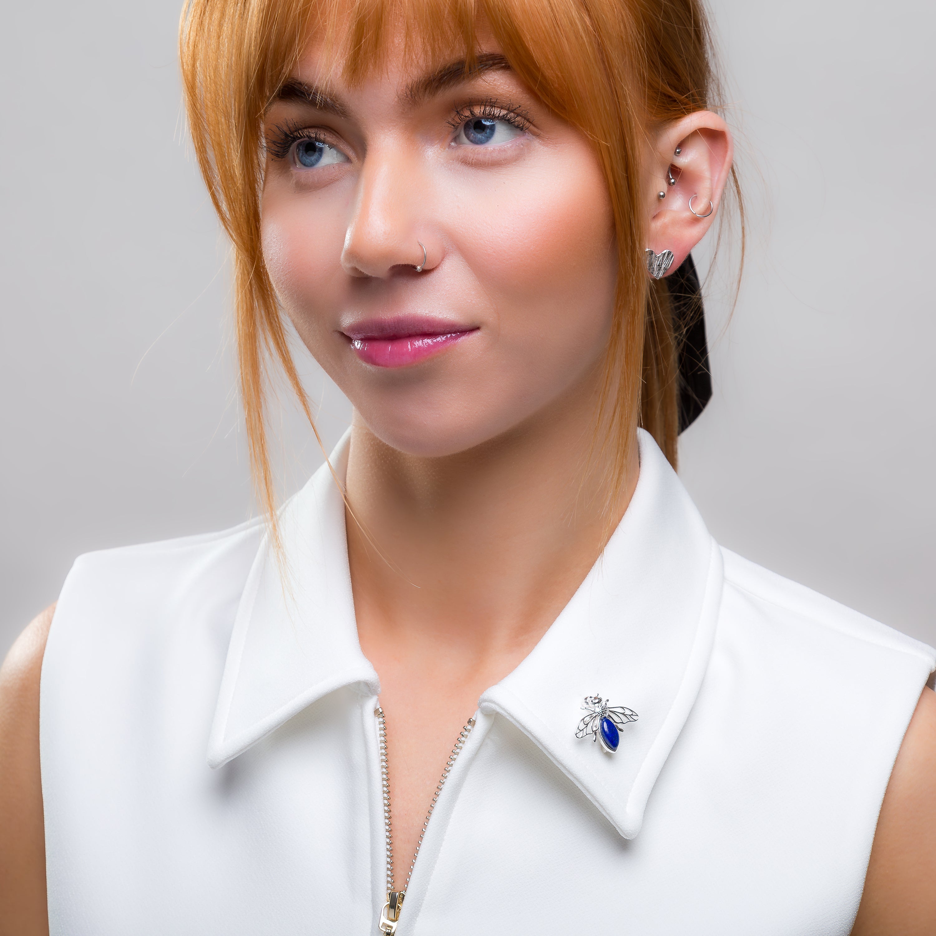Crafted in sold 925 sterling silver and adorned with a natural blue Lapis Lazuli gemstone body to capture the beauty of this stunning creature. The brooch comes complete with a silver pin which includes a safety clasp for extra protection when wearing.
