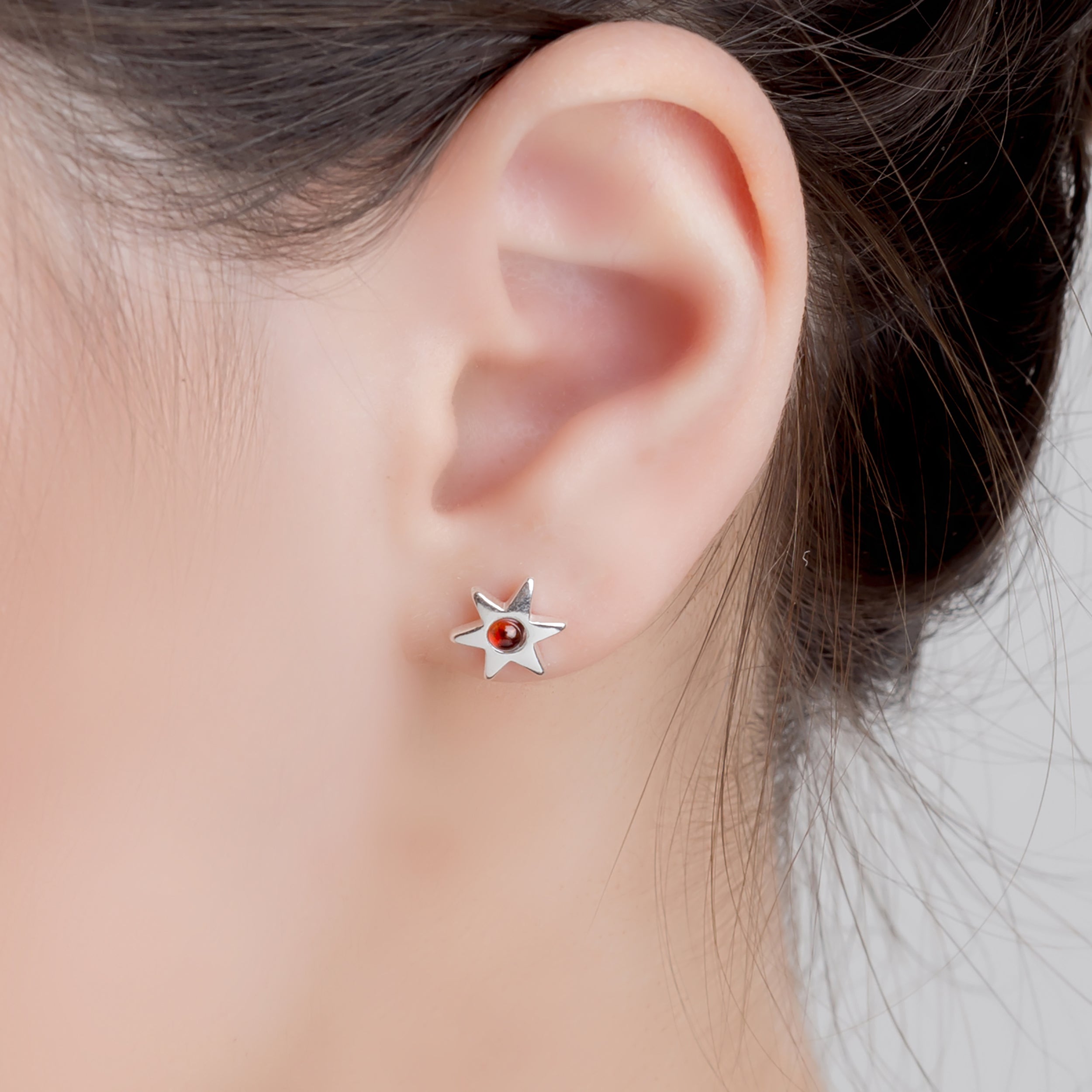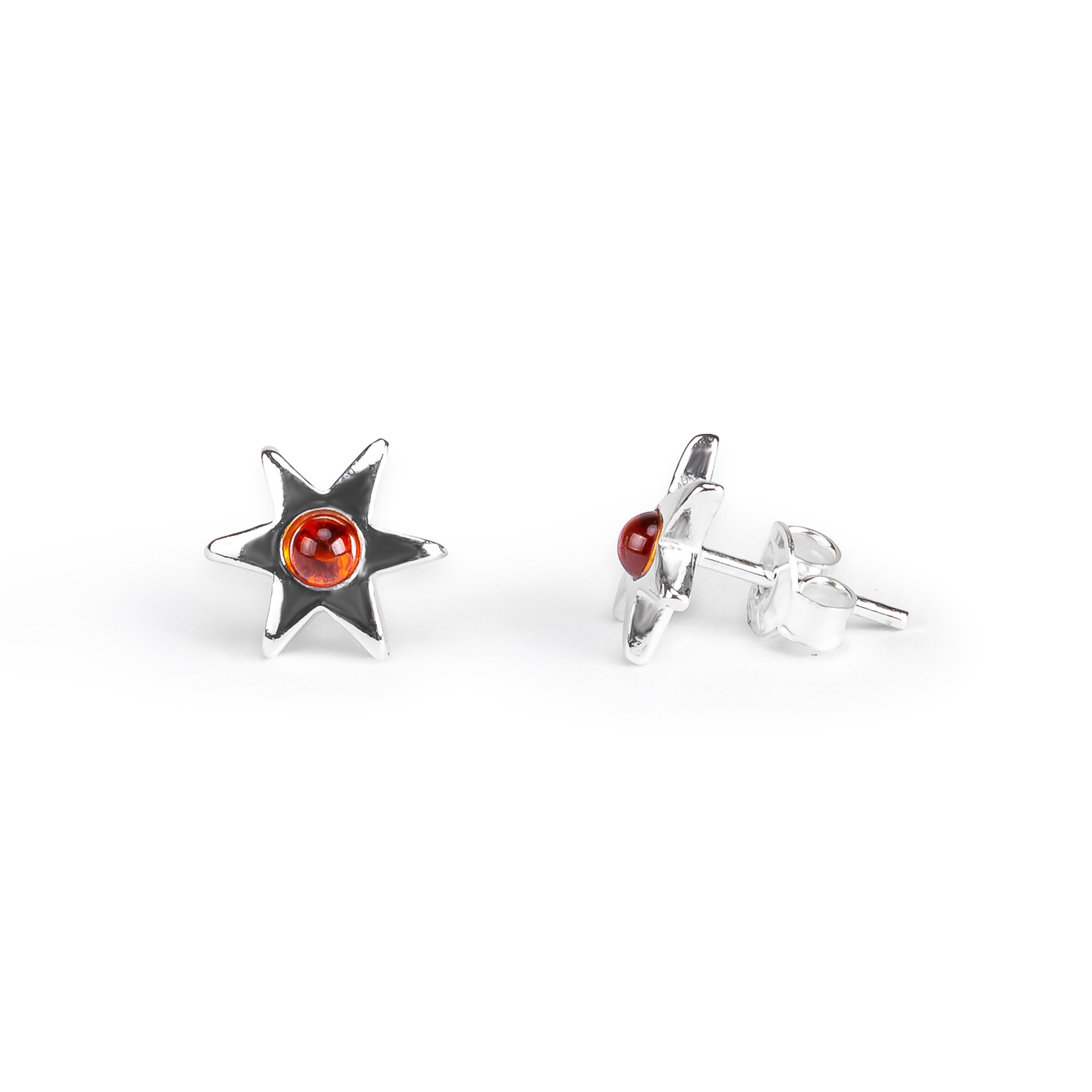 Little Star Stud Earrings in Silver and Cognac Amber