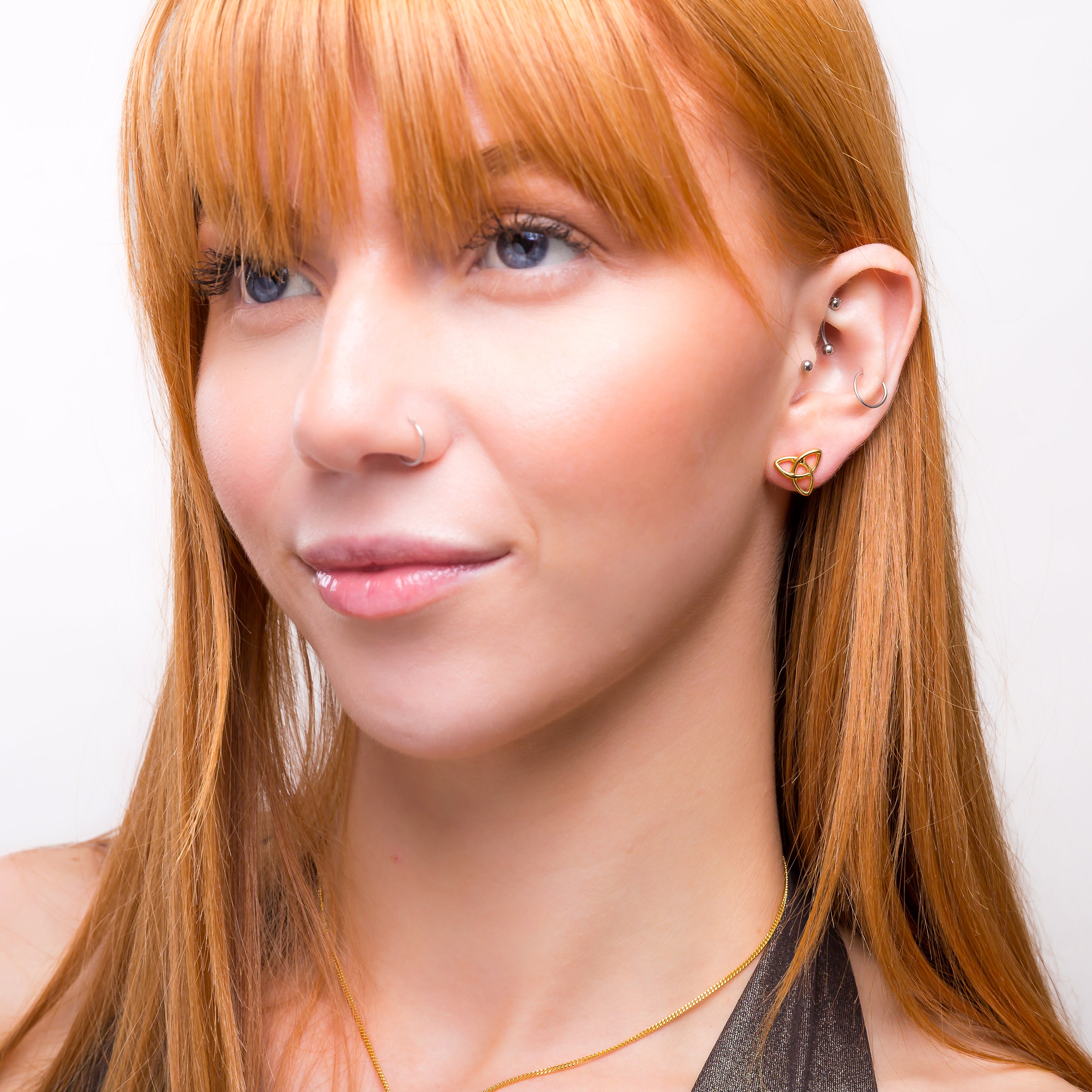 Handcrafted in 925 Sterling Silver with 24ct Gold, these versatile studs represent the classic Celtic Knot shape. Complete with a solid post and bullet backing.