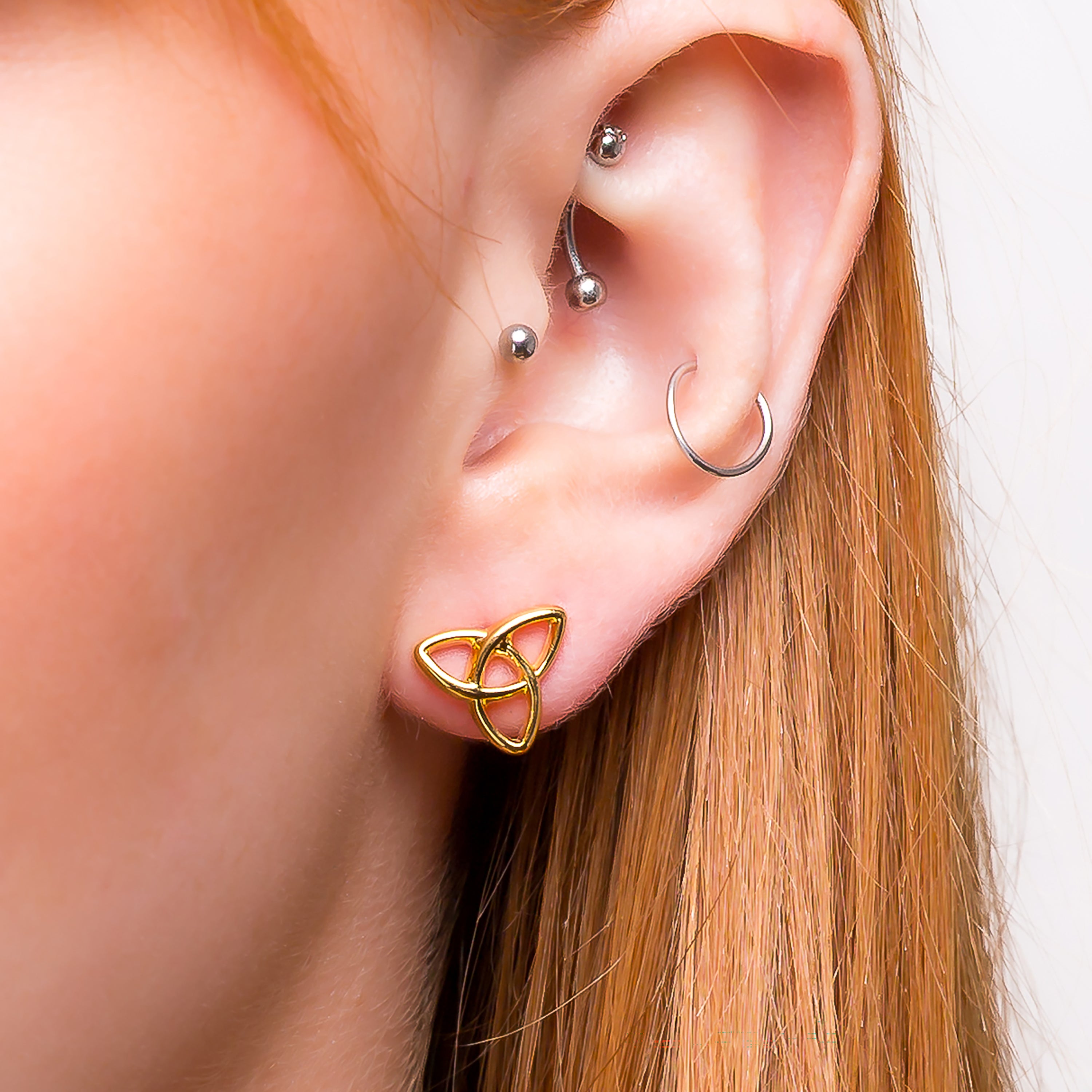 Celtic Knot Stud Earrings in Silver with 24ct Gold