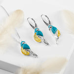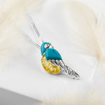 Tropical Macaw Parrot Necklace in Silver, Turquoise and Yellow Amber