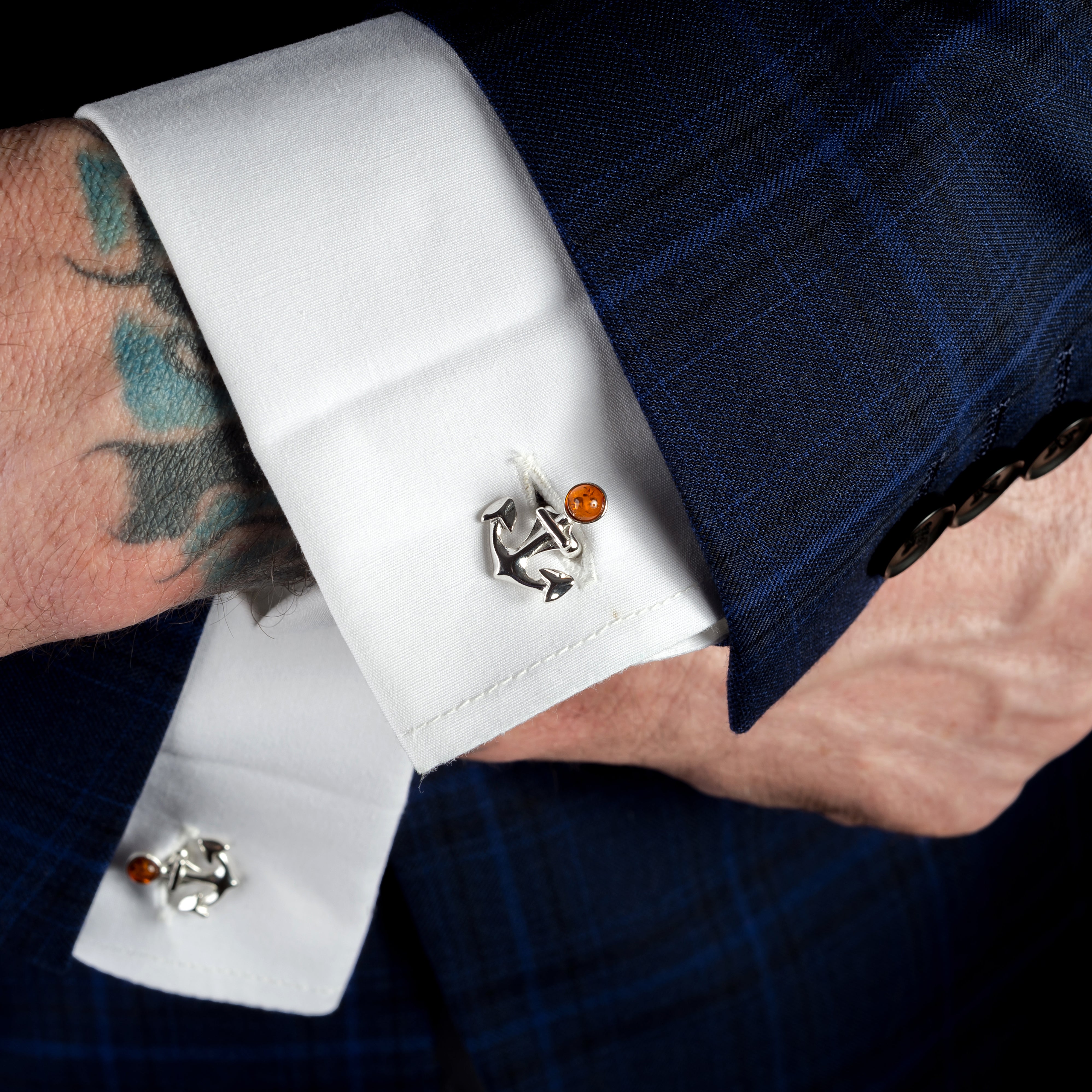 For a man that loves the open water, these Silver and Amber Anchor Cufflinks will make a surprise gift.