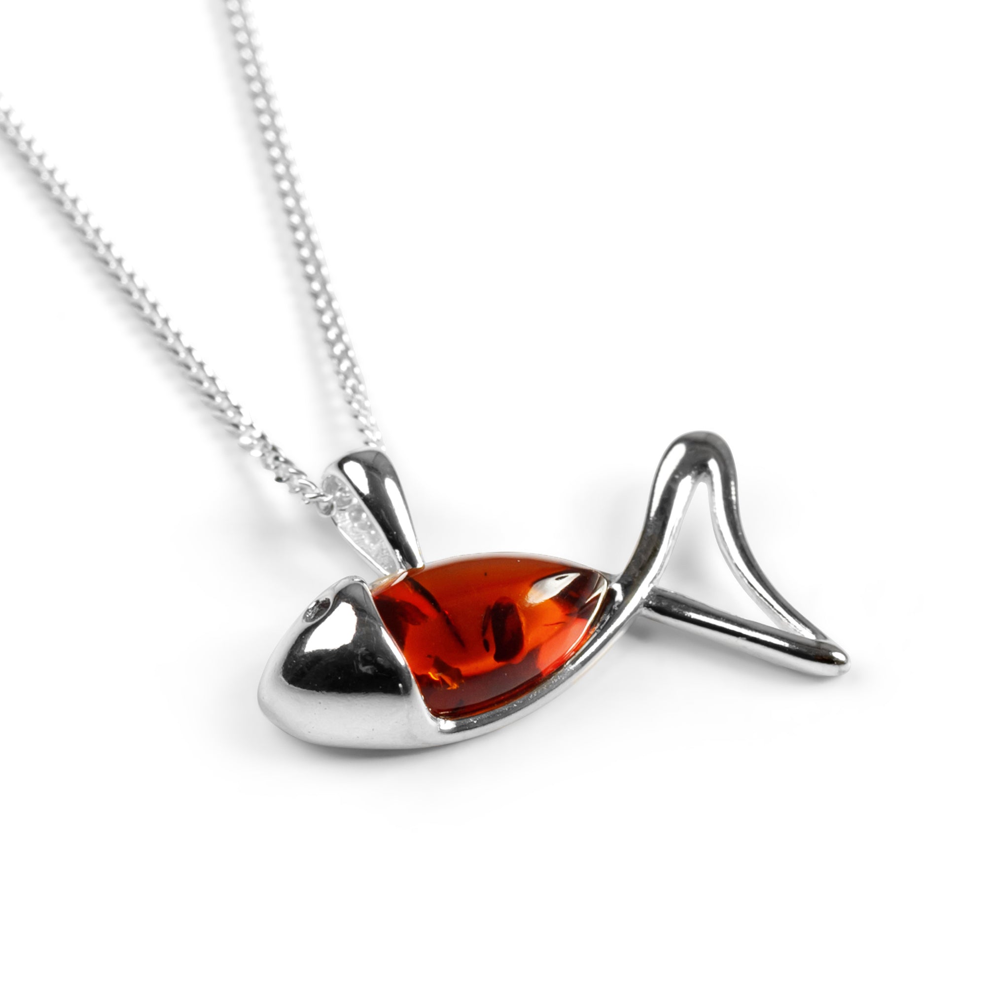 Crafted in 925 Sterling Silver, this sweet fish has a genuine Baltic Amber gemstone body and will instantly remind you of your goldfish friend. Complete with a silver chain, it is a great gift for all ages.