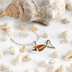 Little Fish / Ichthys Fish Necklace in Silver and Amber