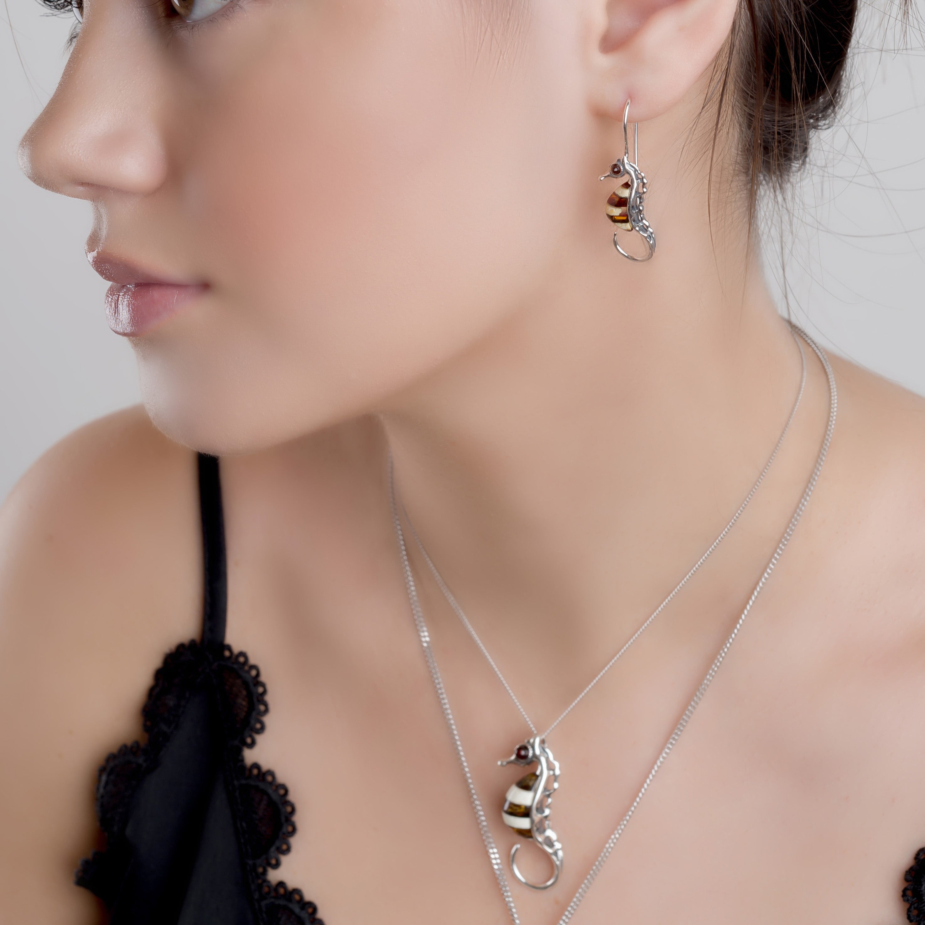 If you love jewellery with a WOW factor, then our Silver and Amber Striped Seahorse Earrings are just for you!