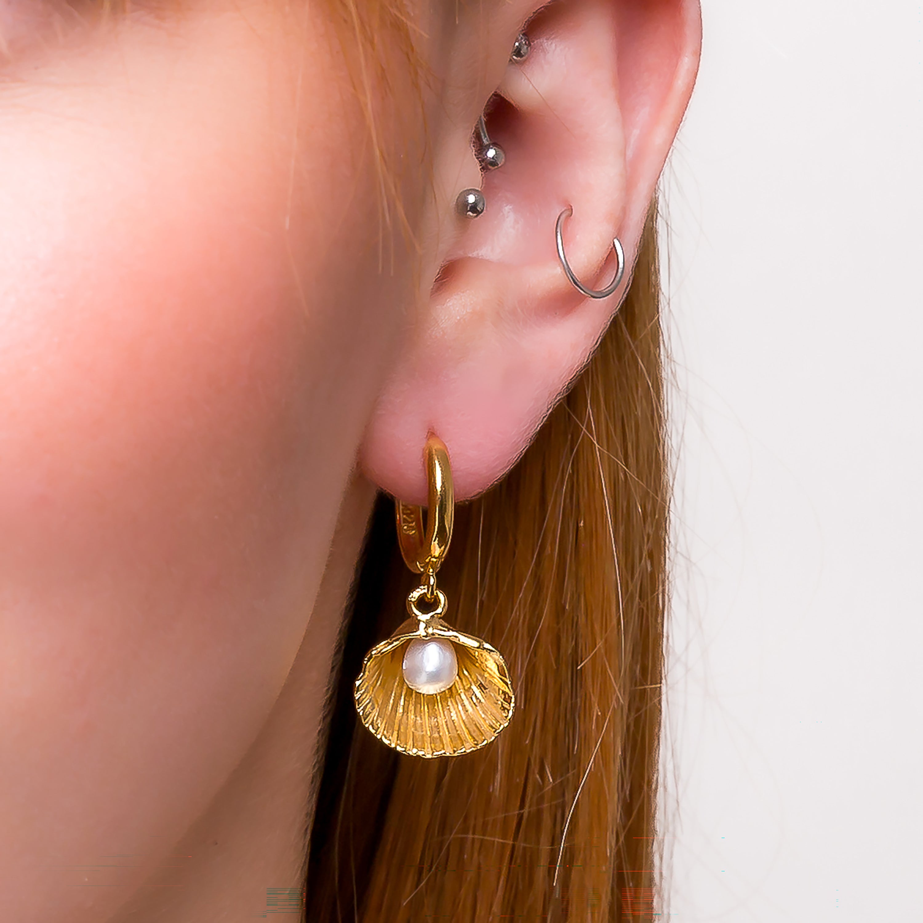 Bring those sunny beach memories to life with our Sea Shell Hoop Earrings, featuring sterling silver, 24ct gold plating, and a touch of pearl.