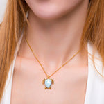 This charming Sea Turtle Necklace in Silver with 24ct Gold and Larimar is your ideal holiday companion! Featuring a playful blend of silver finished with 24ct gold and natural Larimar, it captures the magic of a turtle’s shell. Wear it to keep summer vibes close, even when the winter chill sets in.