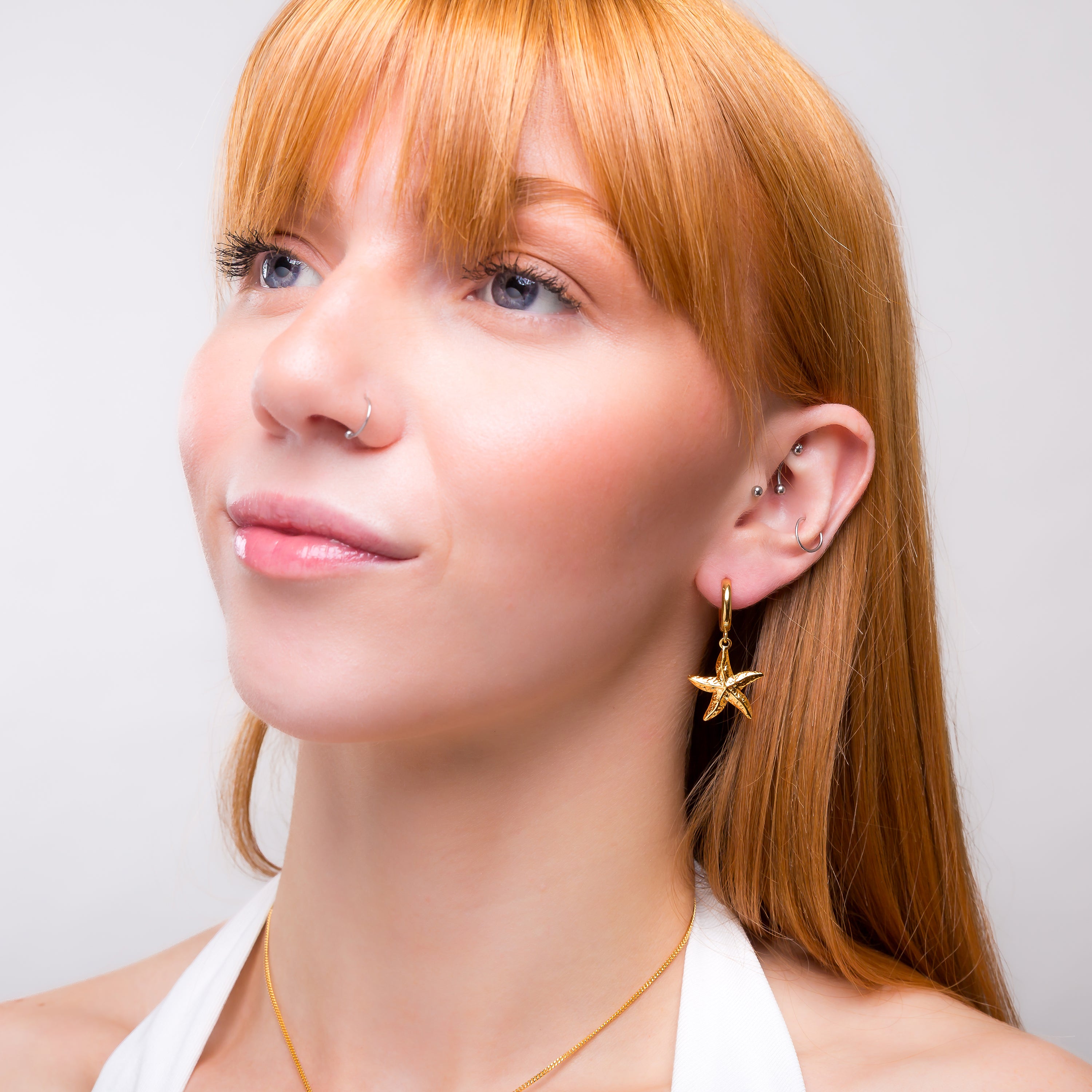 Starfish Hoop Earrings in Sterling Silver with 24ct Gold