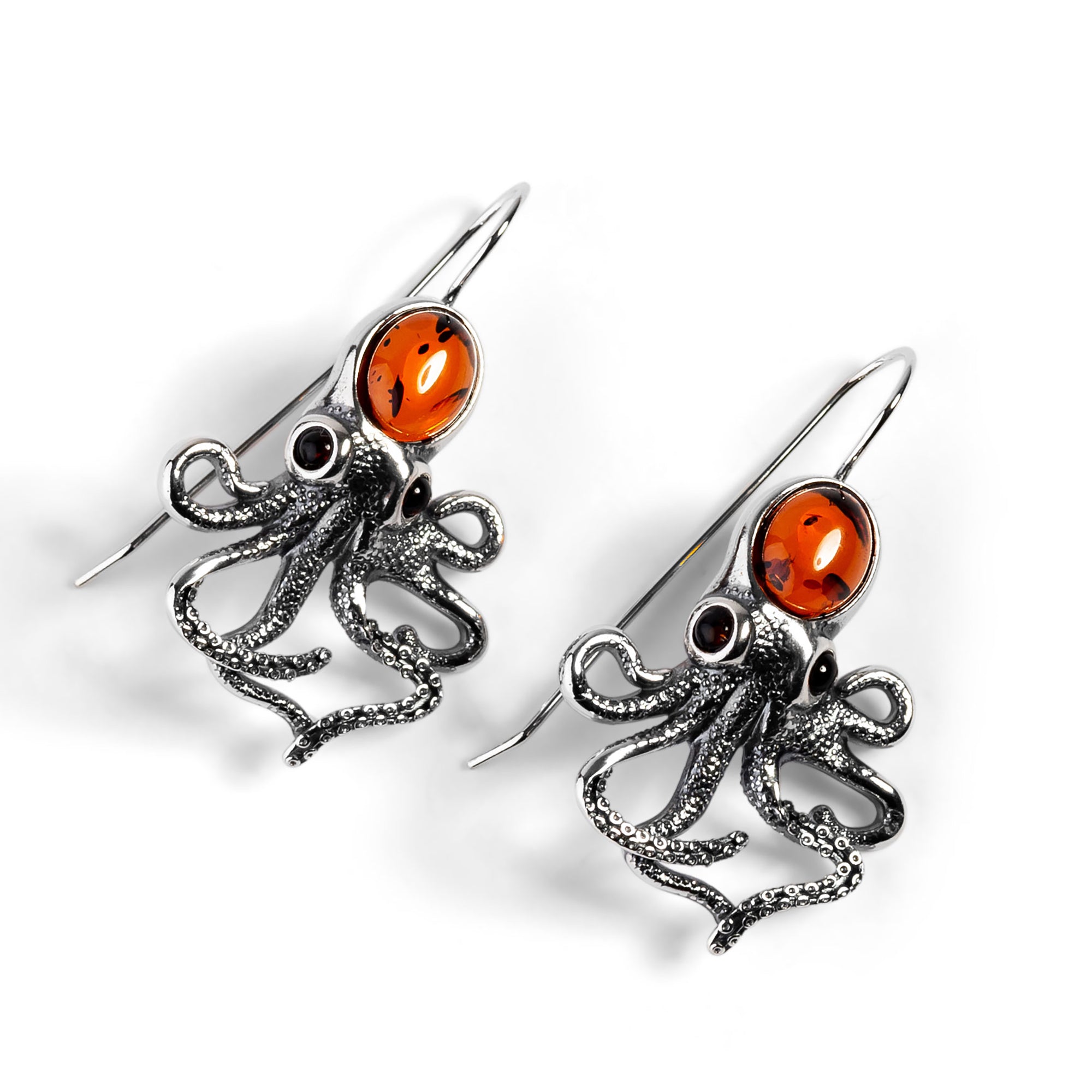 Crafted in solid 925 silver and decorated in genuine Baltic Amber, these quirky earrings are just perfect for those who love eccentric jewellery.