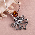 Statement Silver Octopus Necklace with Amber