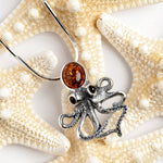 Beautifully crafted in solid 925 silver and adorned with a large genuine Baltic Amber gemstone in the head of the Octopus. Finished with amazing detailed tentacles, this necklace is ideal for anyone who loves quirky jewellery.