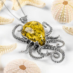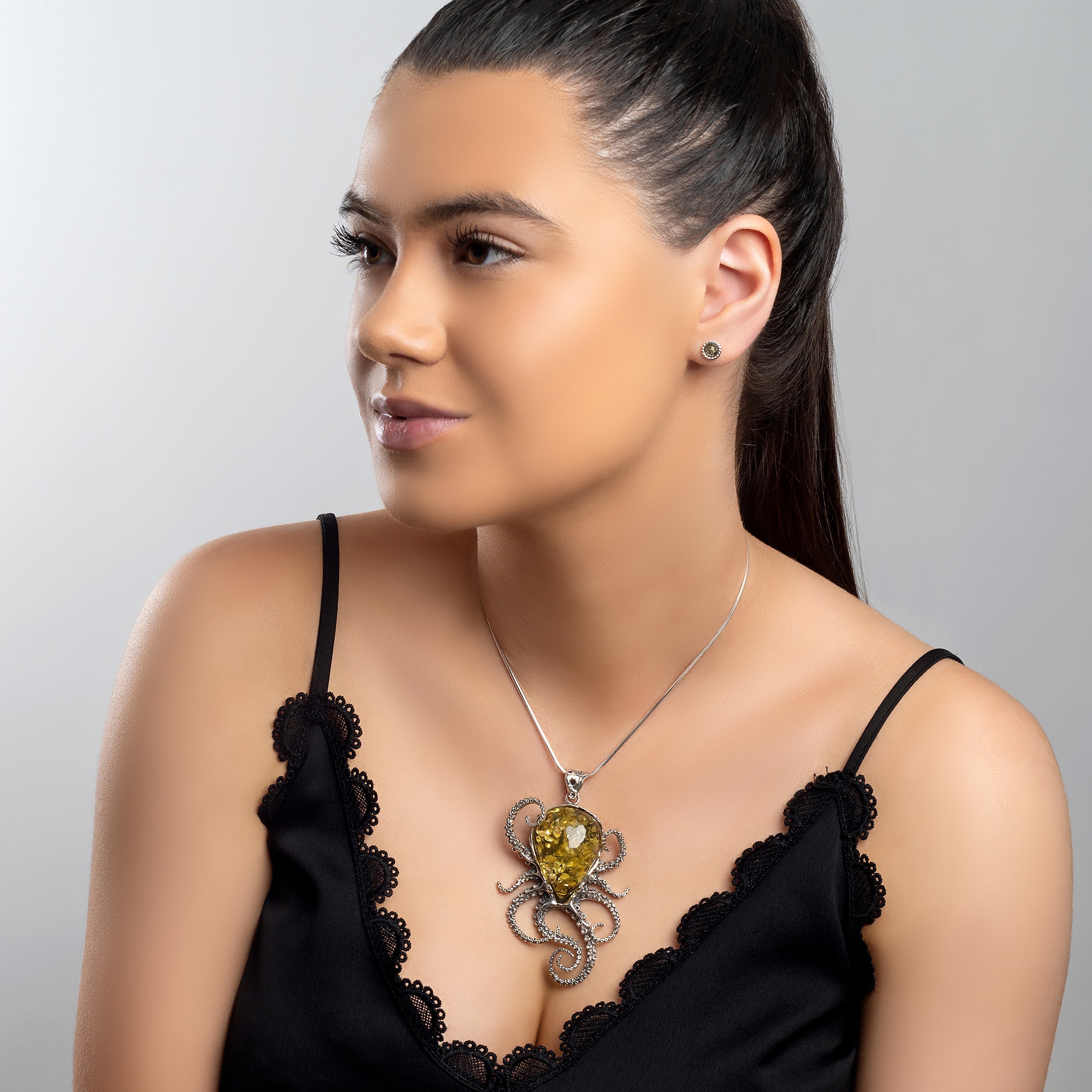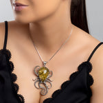 Make a daring statement with this unique Silver and Green Amber Octopus Necklace.