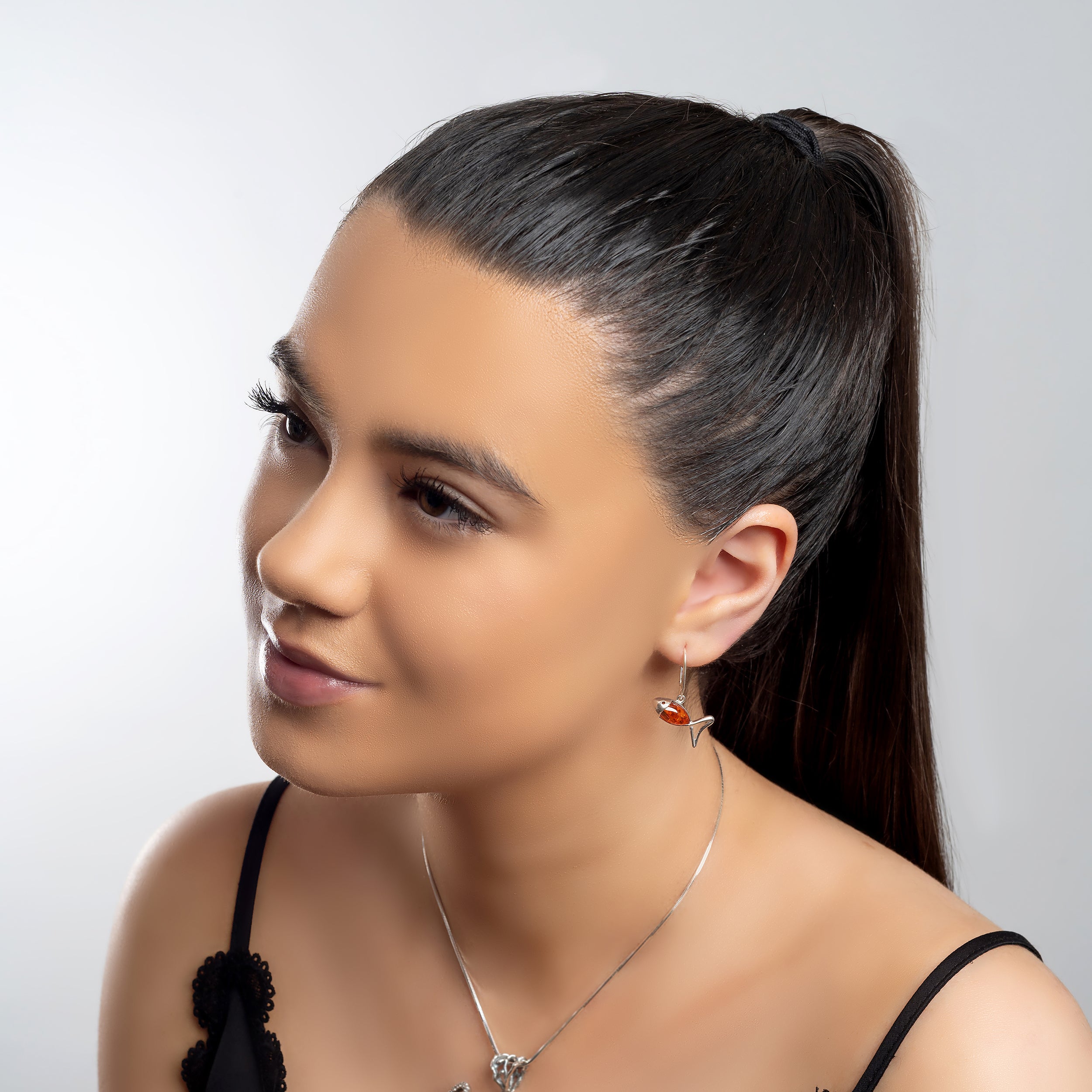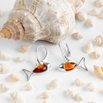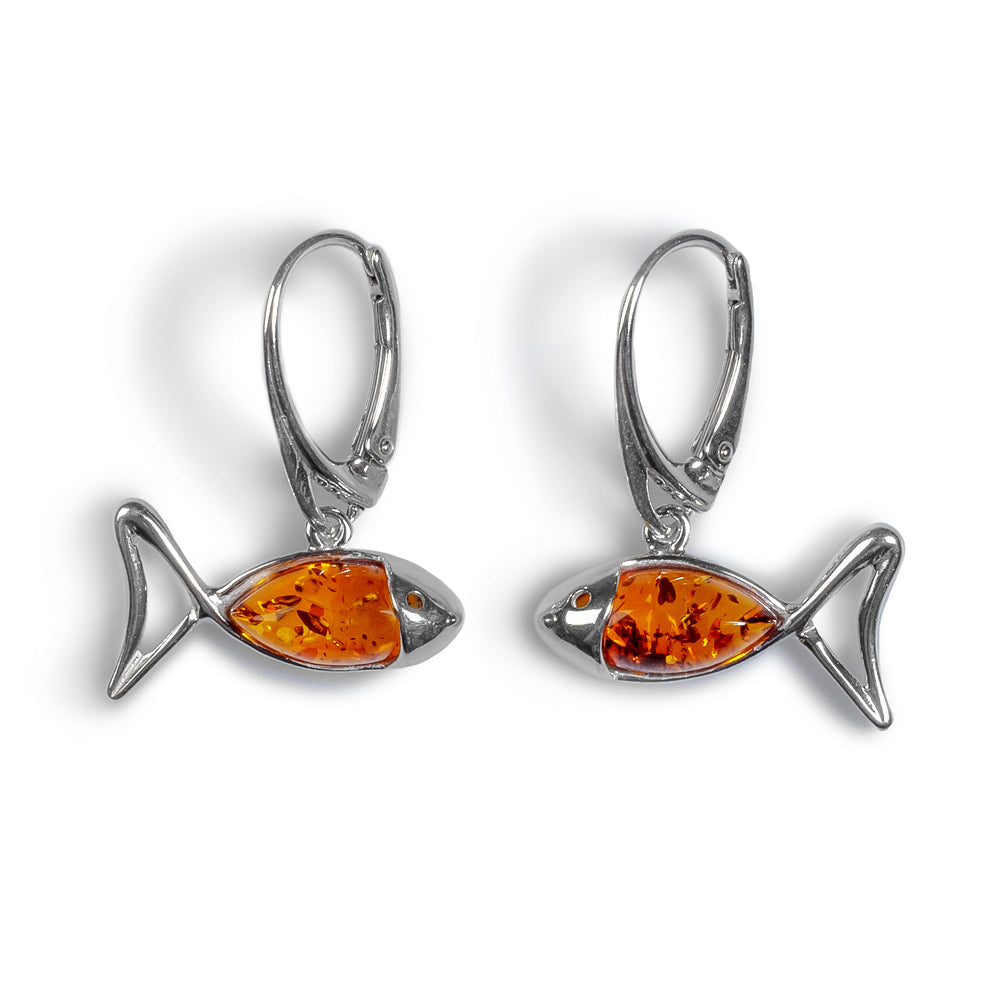 Little Fish / Ichthys Fish Earrings in Silver and Amber