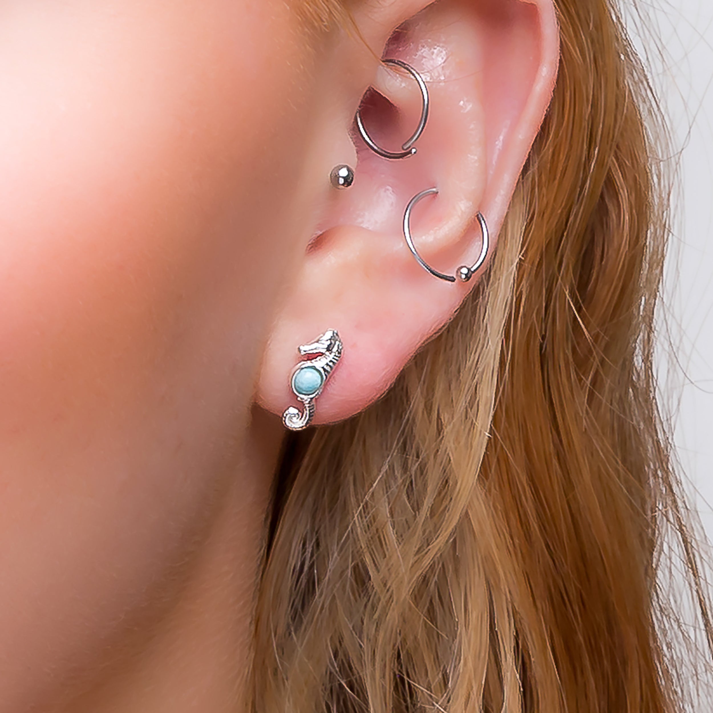 Miniature Seahorse Stud Earrings in Silver & Larimar