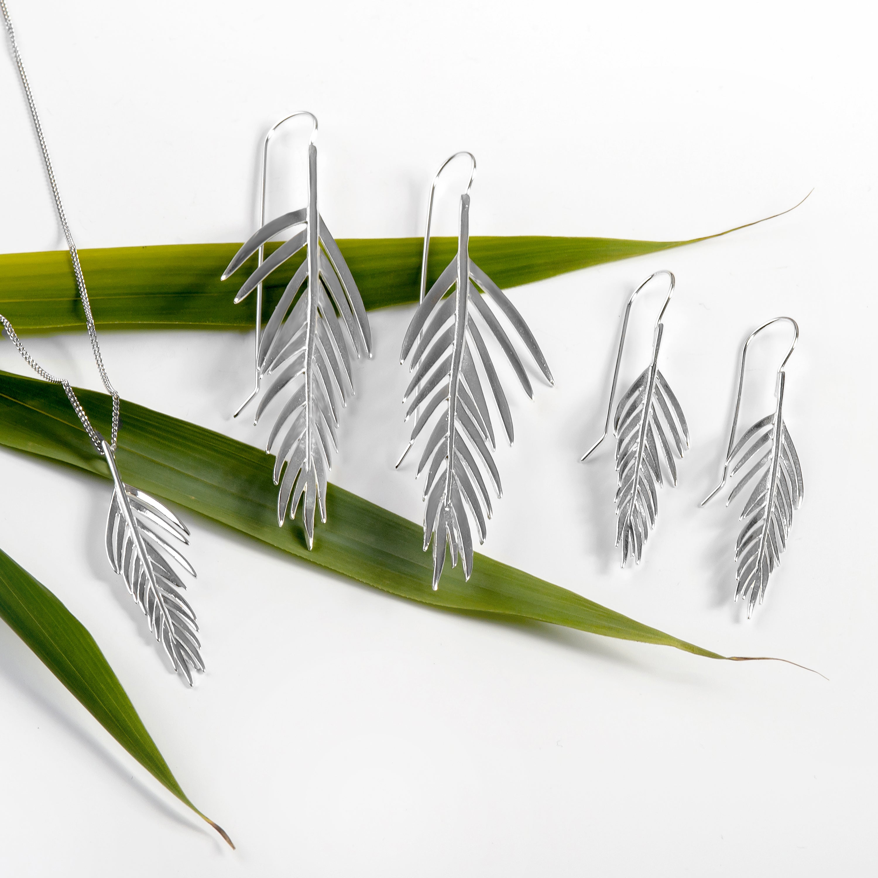 Areca Palm Leaf Necklace in Silver