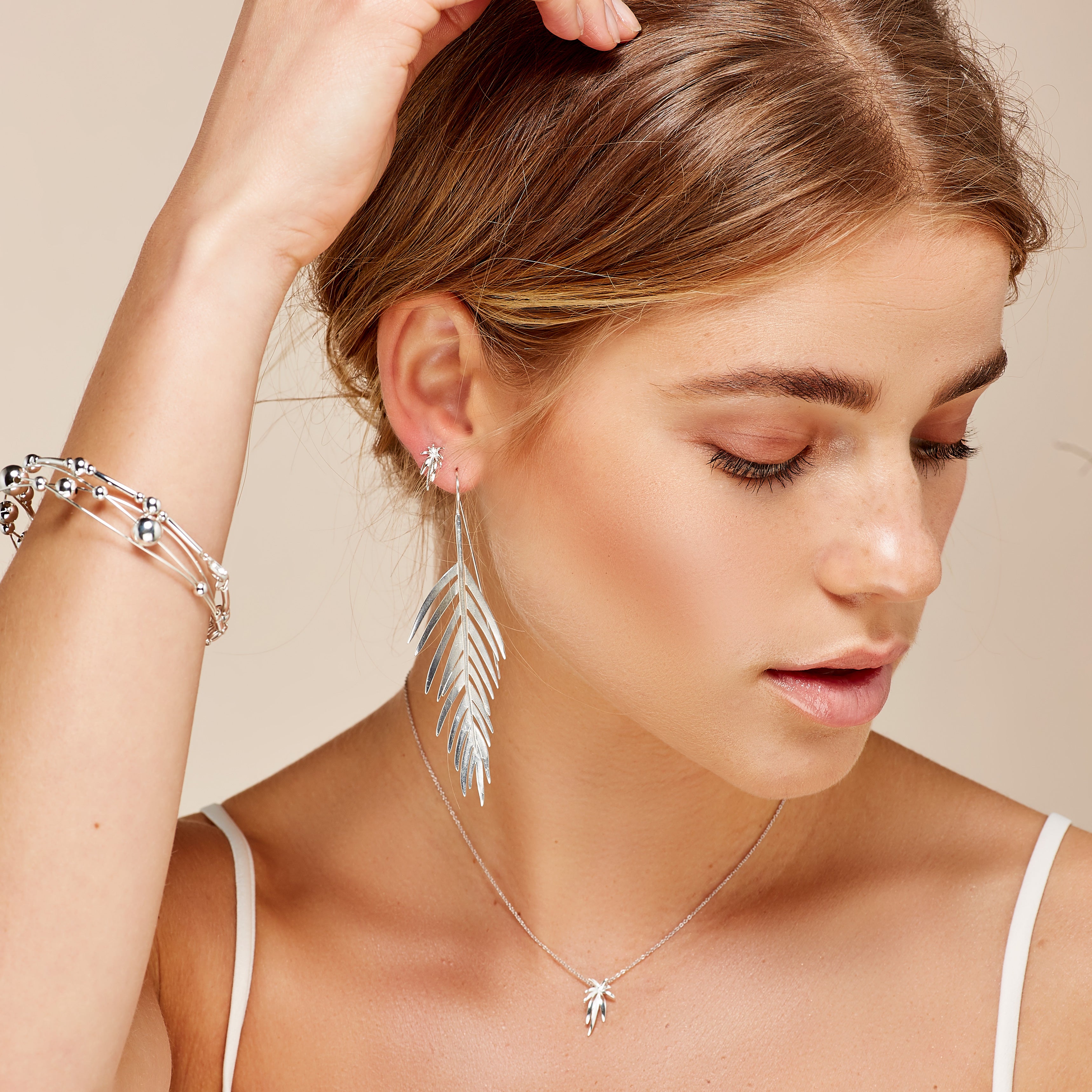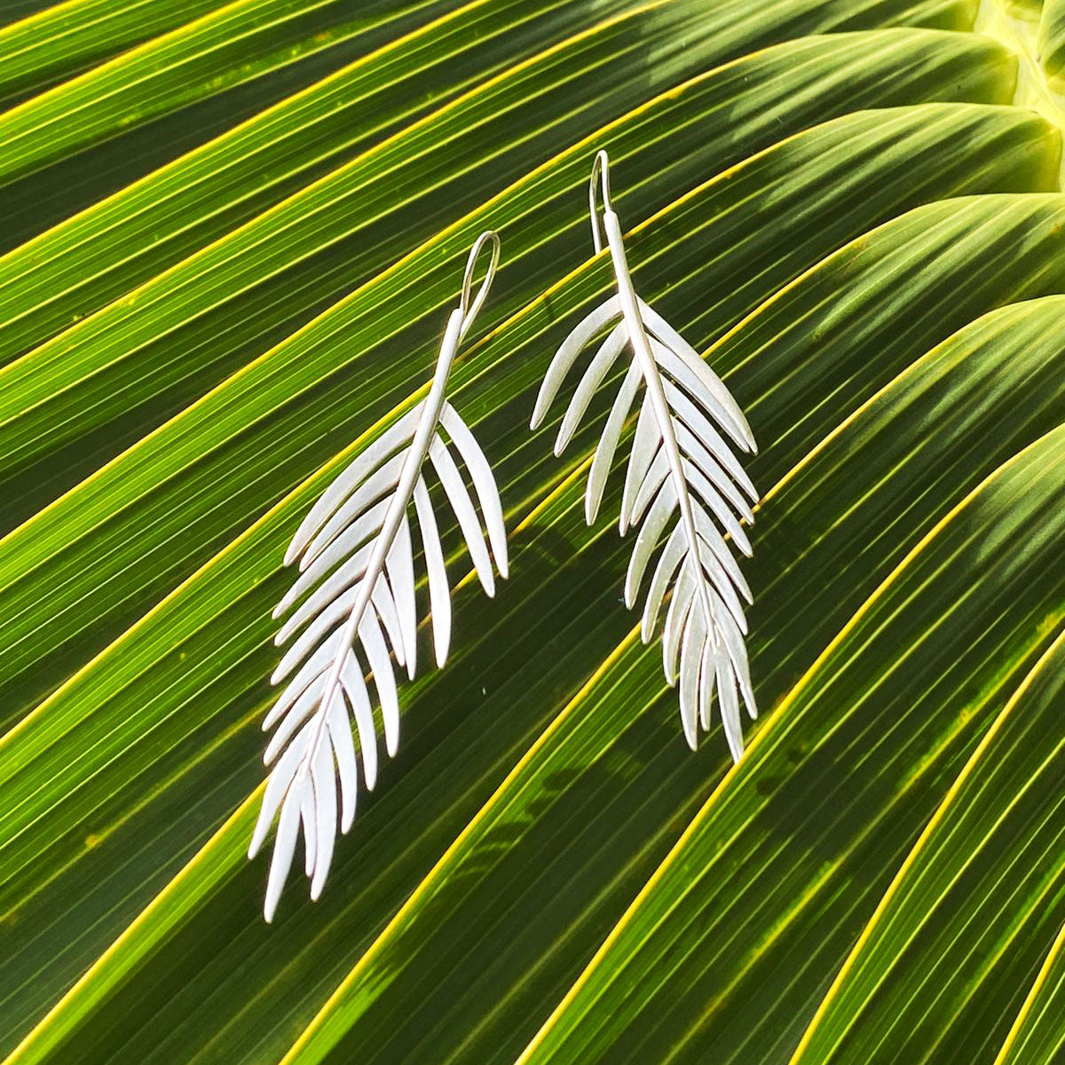 Add a little bit of paradise to your jewellery collection with our Silver Large Areca Palm Leaf Earrings.