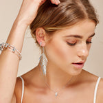 Large Areca Palm Leaf Drop Earrings in Silver