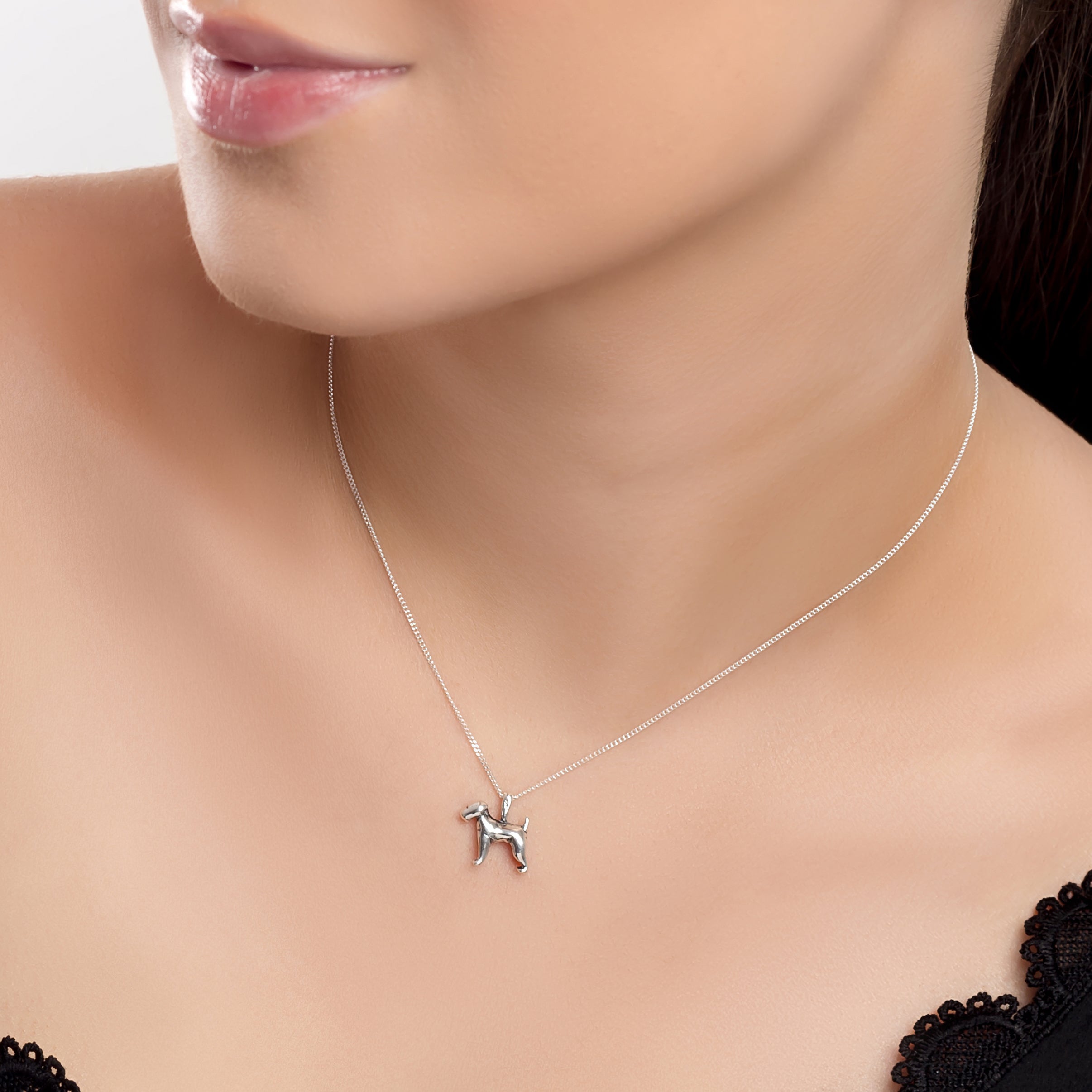 Carefully crafted in 925 silver, this necklace shows all the true attributes of the largest of the terrier dogs. With its noticeable upright tail and strong head, any lover of this breed would be delighted to own this.