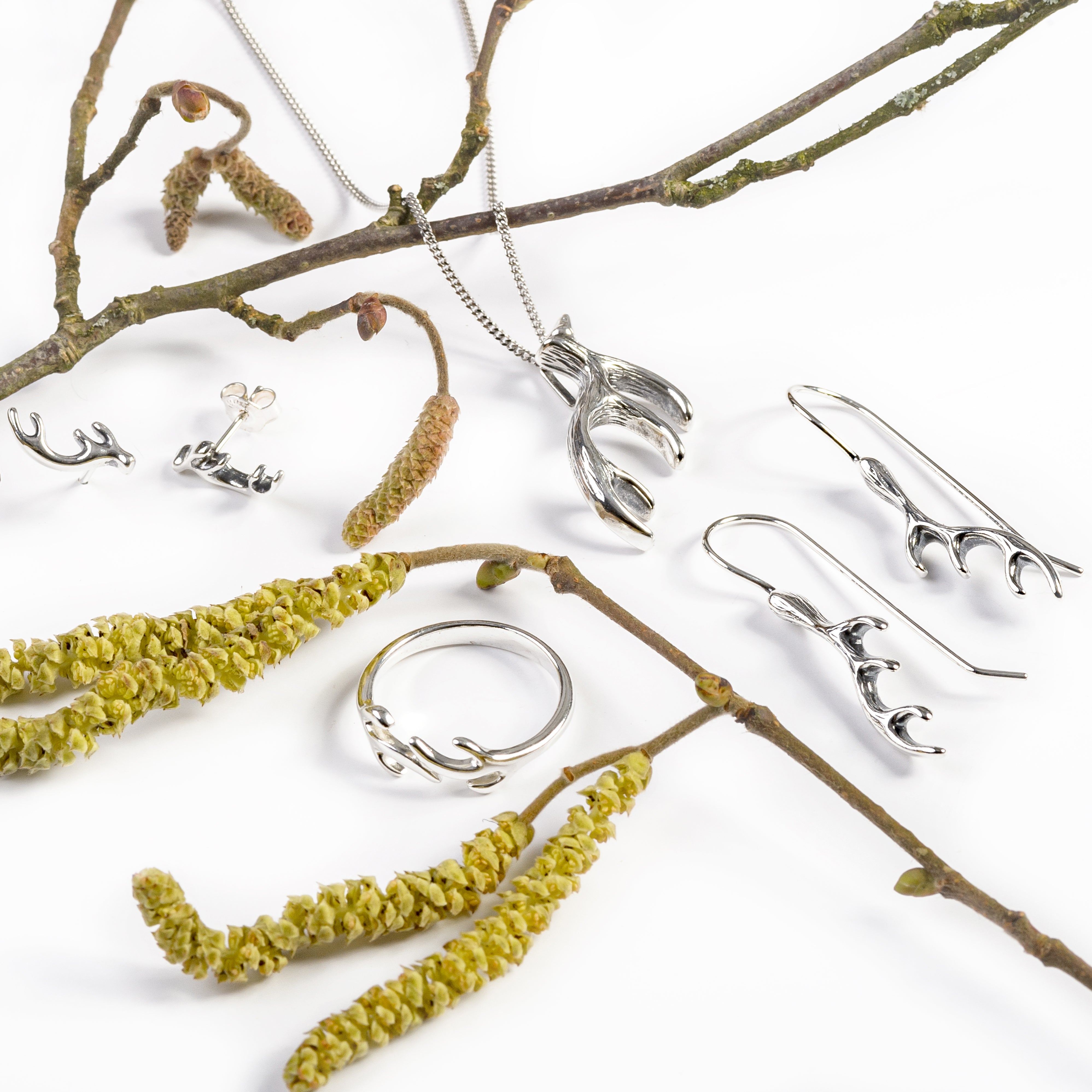 Crafted in 925 Sterling Silver, each stud has been carefully designed into a perfectly formed antler. These unique earrings can be worn as ear climbers or they can be worn to drop off the ear just slightly too.