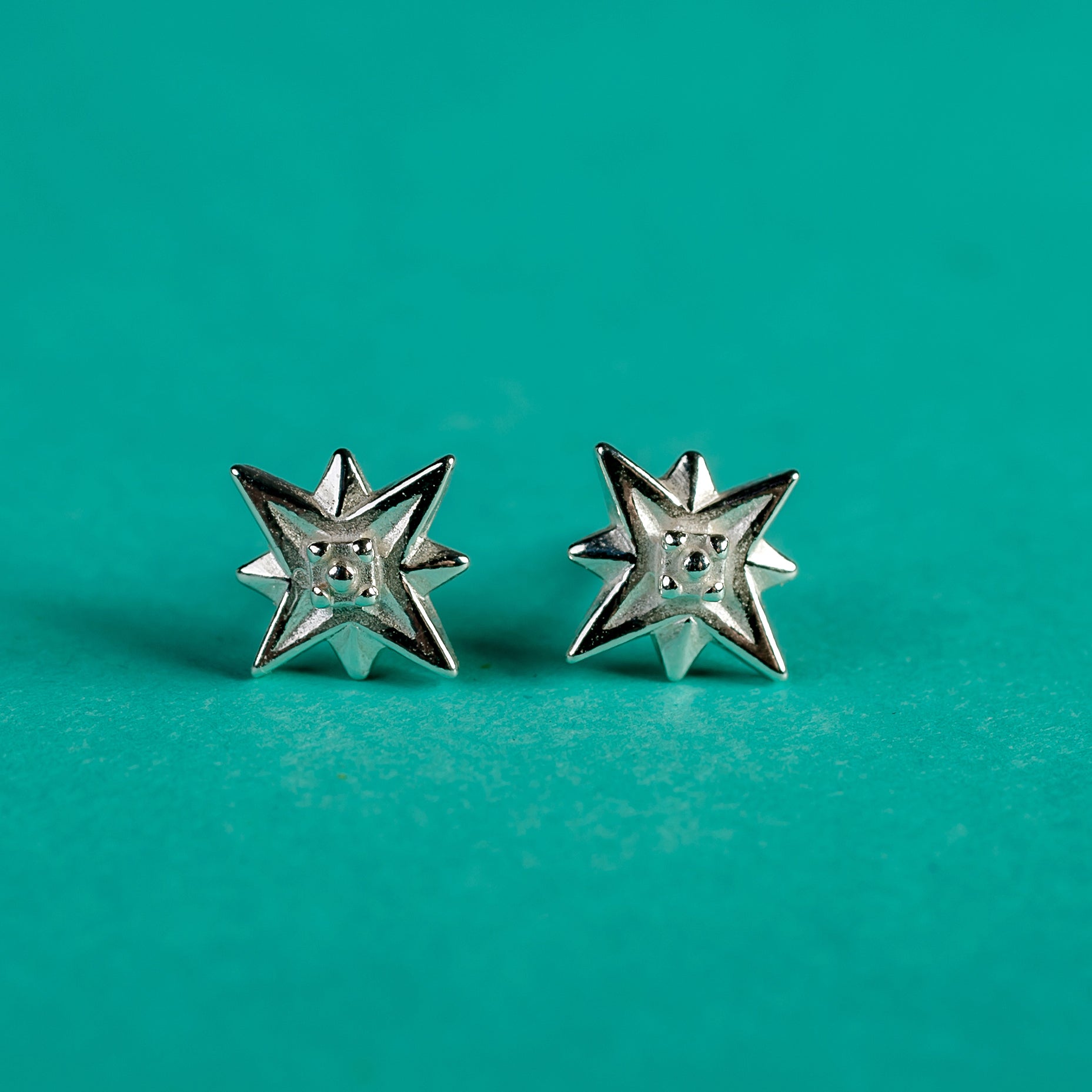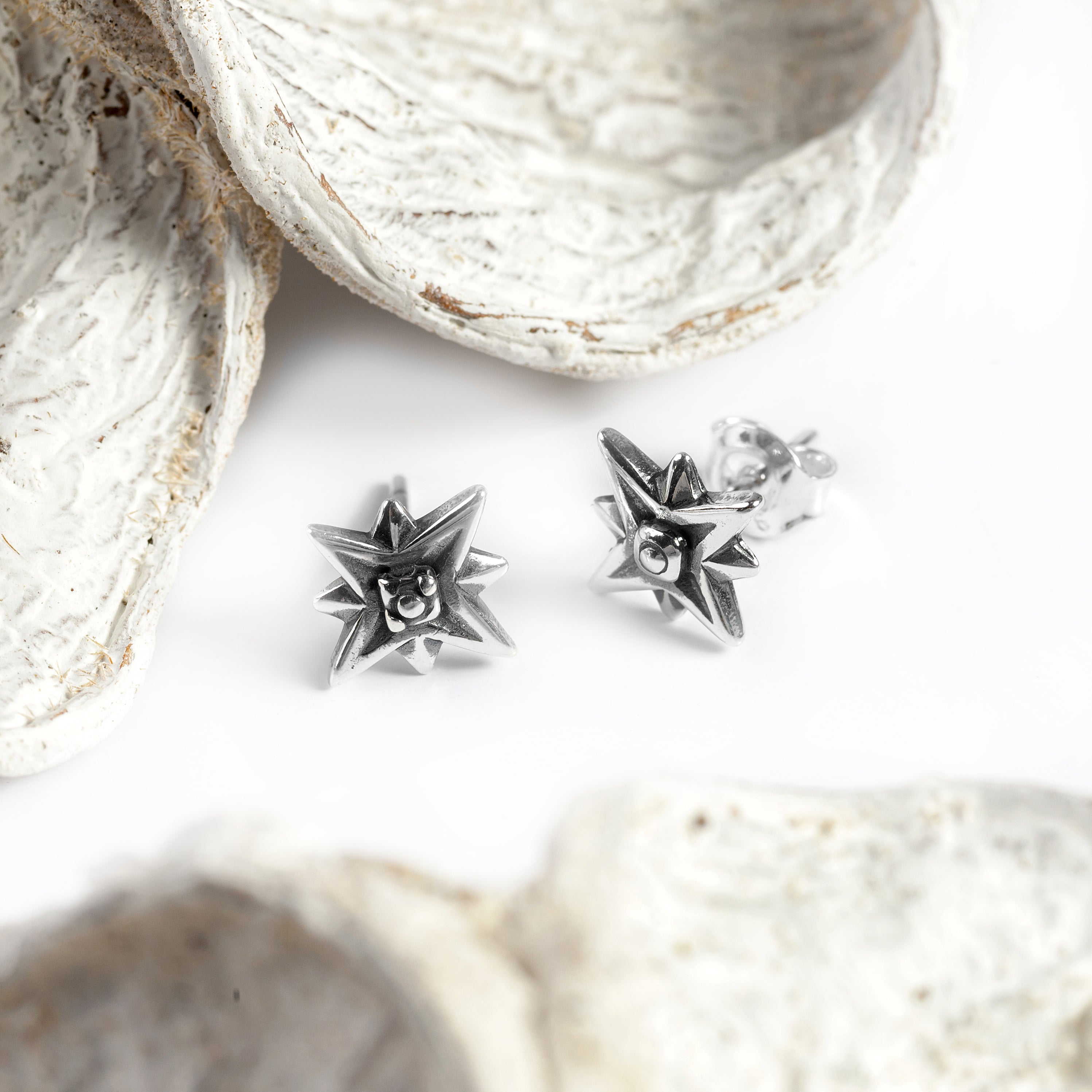 Handcrafted in 925 Sterling Silver, these versatile studs are full of detail and being an eight pointed star makes them even more special. These earrings will add a touch of sparkle to your everyday style. Complete with a solid silver post and butterfly backing.