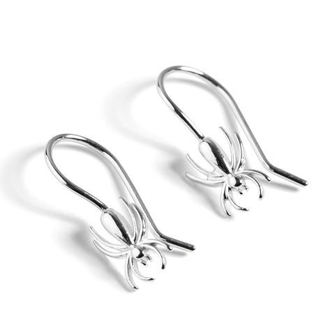 Spider on Web Hook Earrings in Silver and Cherry Amber