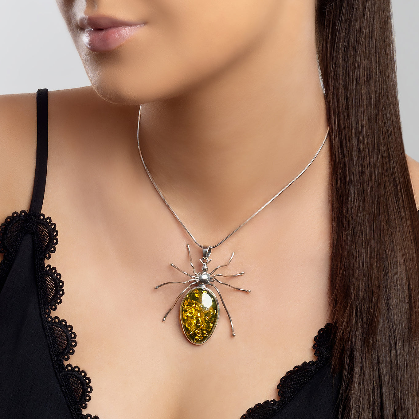 Fabulous Handmade Spider Necklace in Silver and Natural Amber