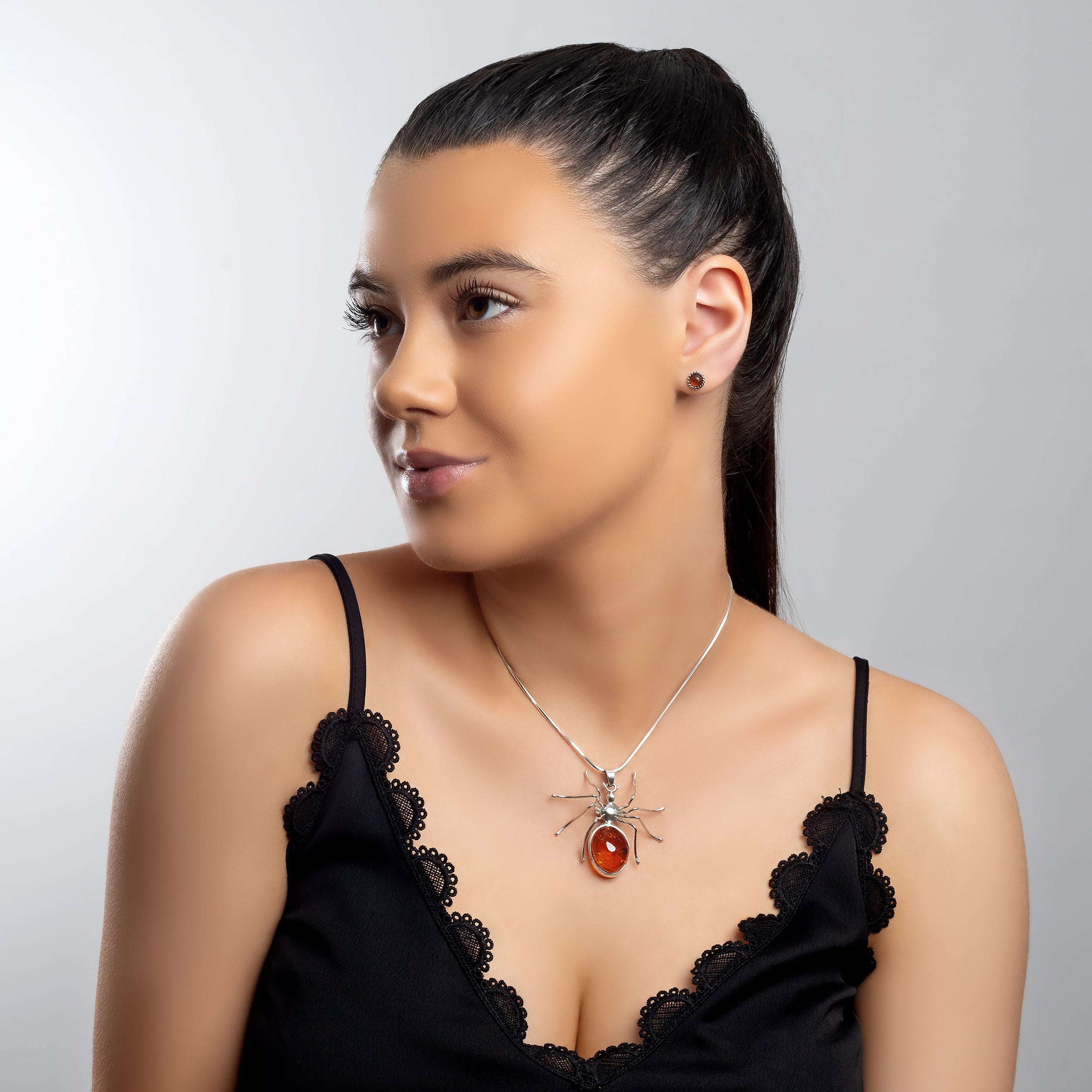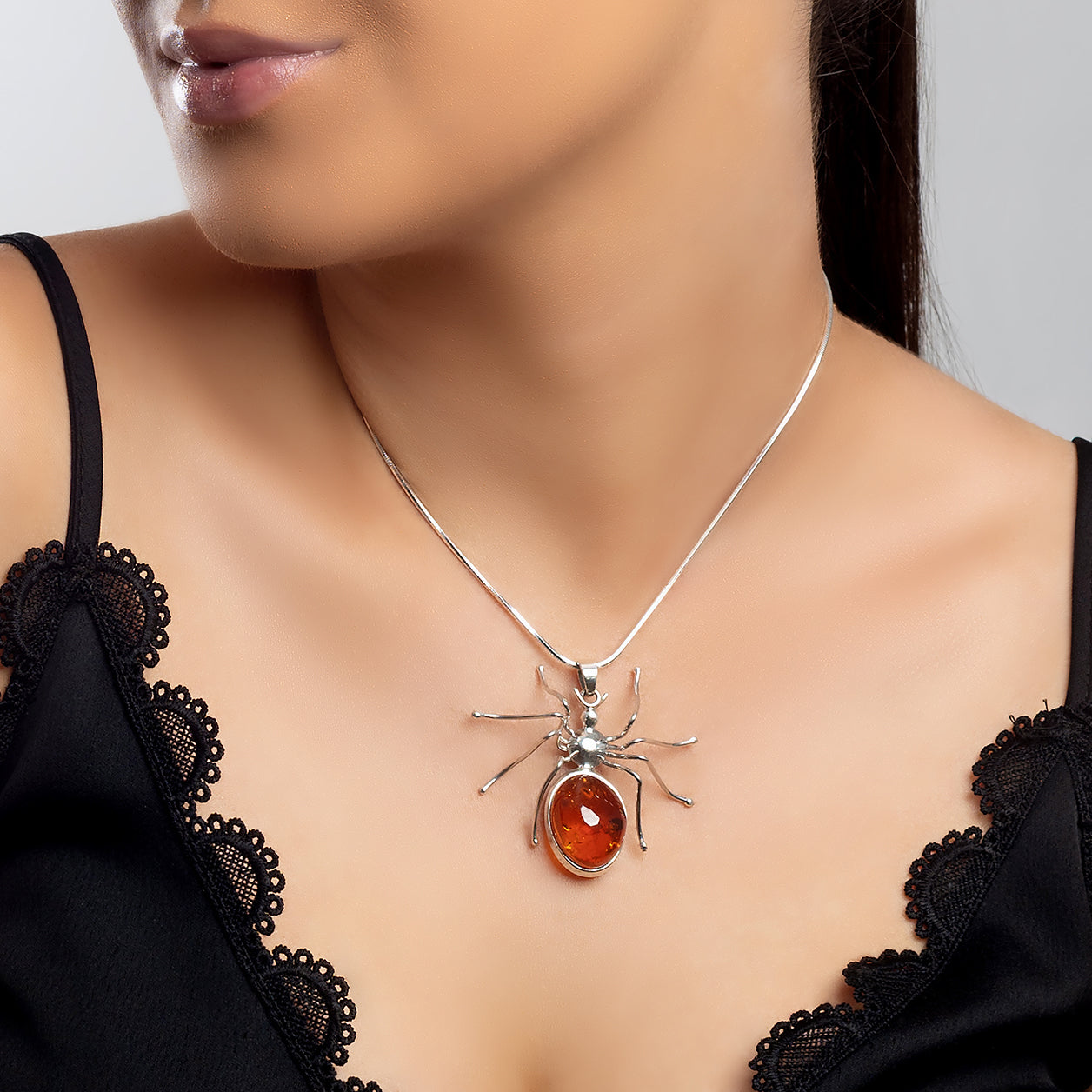 Handmade in 925 Sterling Silver it has a large bulbous genuine Baltic Amber gemstone to represent the body of this feared creature. With 8 solid silver legs and carefully designed upper body, it really is life like. Complete with a solid silver chain in a length of your choice.