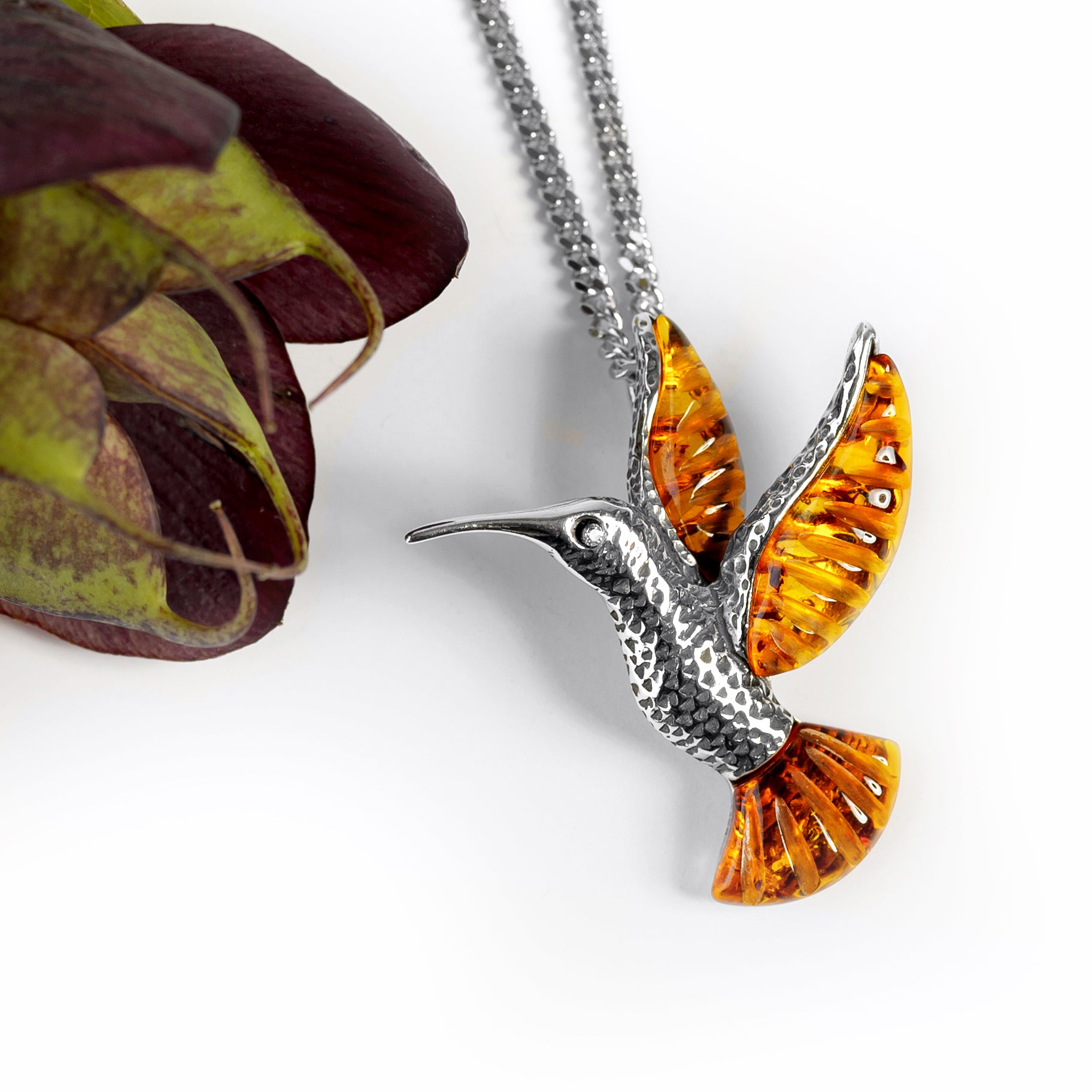 Hummingbird Necklace in Silver and Amber