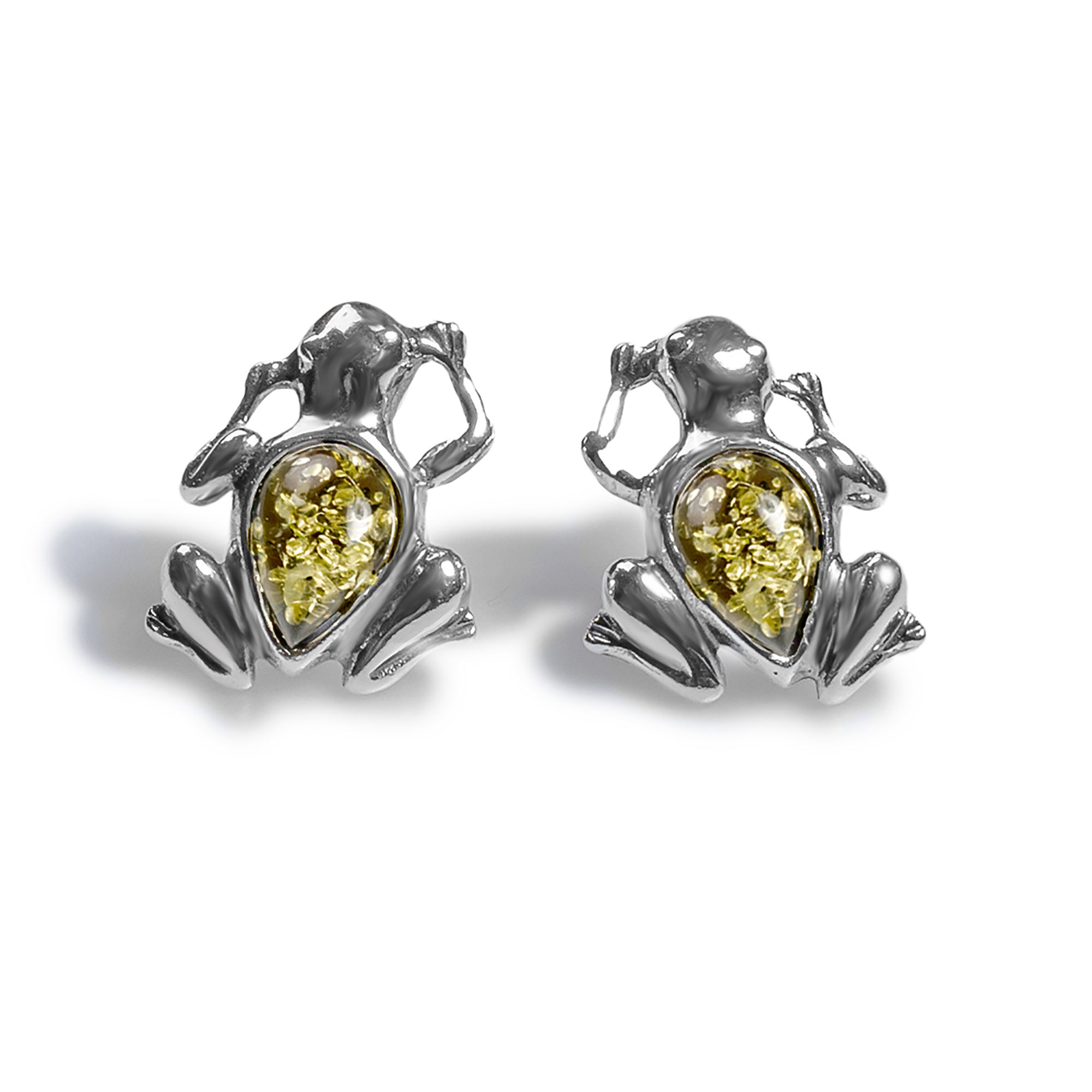 Fun filled Silver and Green Amber Miniature Frog Earrings are definitely a leap from the rest!