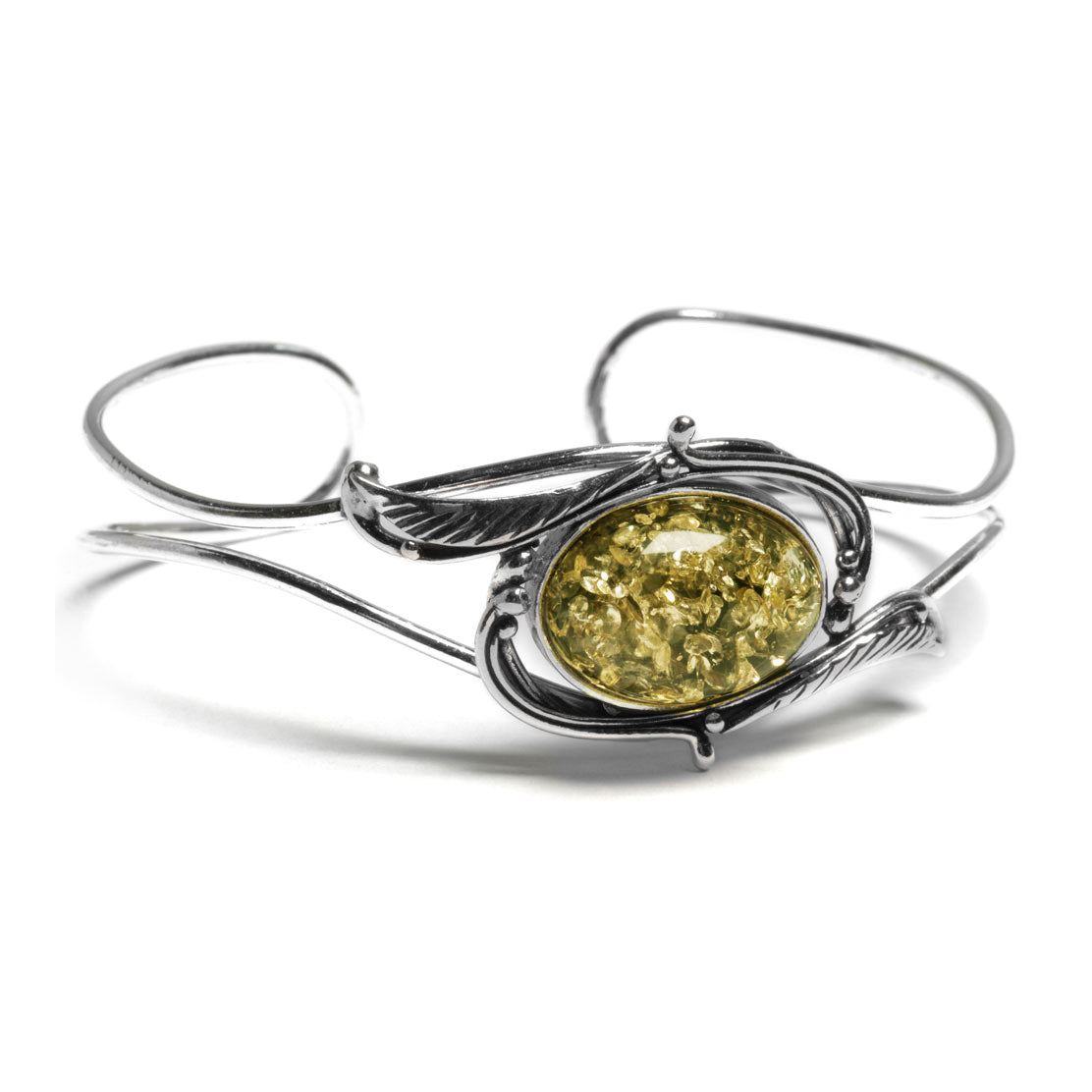 A vintage style with a classic twist! Our Silver and Baltic Amber Feather Design Bangle is both stylish and easy to wear!