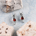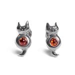 Sitting Cat Stud Earrings in Silver and Amber