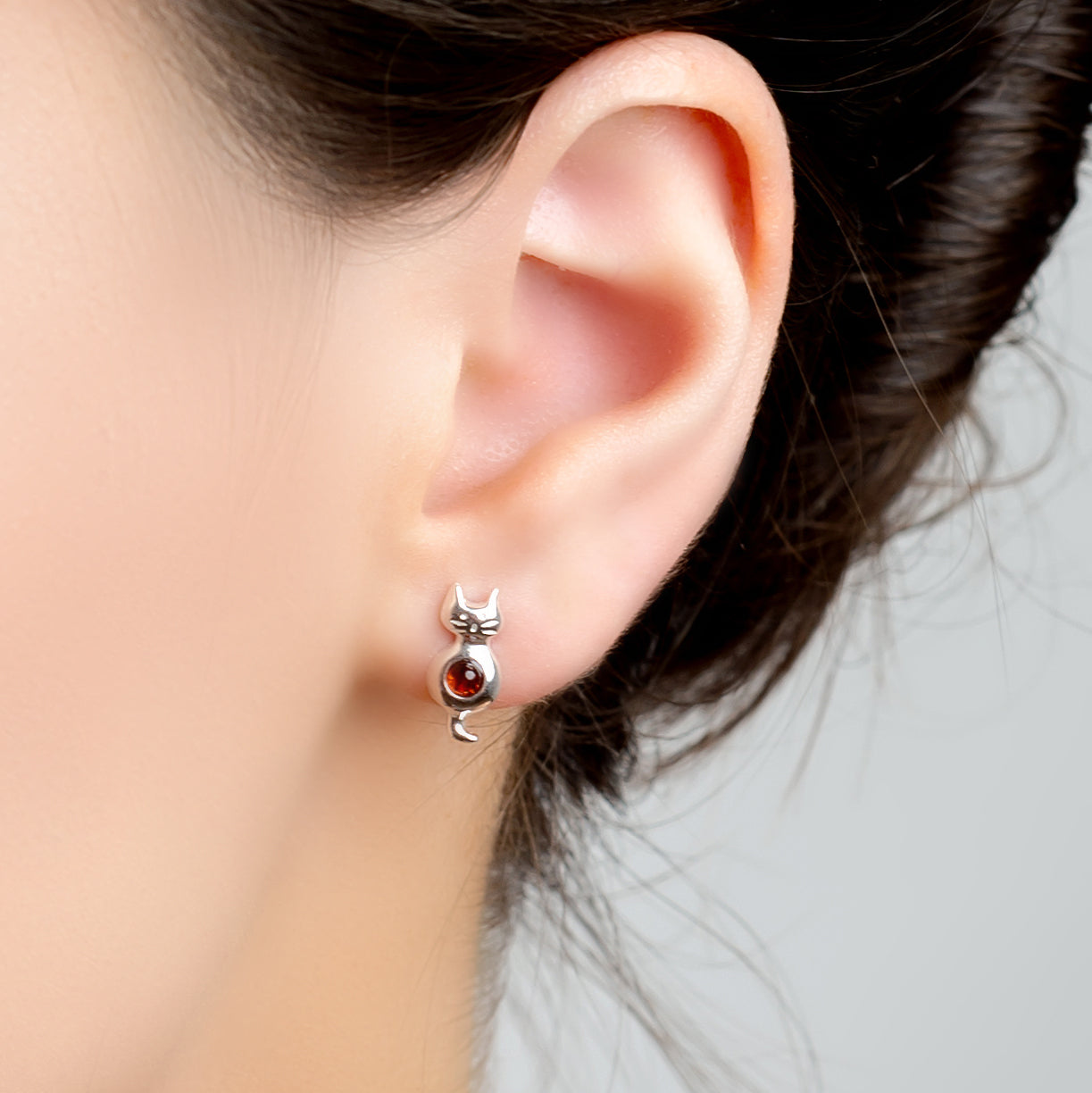 Crafted in 925 silver, each earring has a single genuine Baltic Amber gemstone in the centre. With detailed features including engraved eyes and whiskers, they'll be sure to make any cat lover smile.