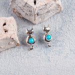 Sitting Cat Stud Earrings in Silver and Turquoise