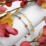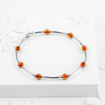 Create effortless everyday style with our Silver & Cognac Amber Bead Tube Bangle.