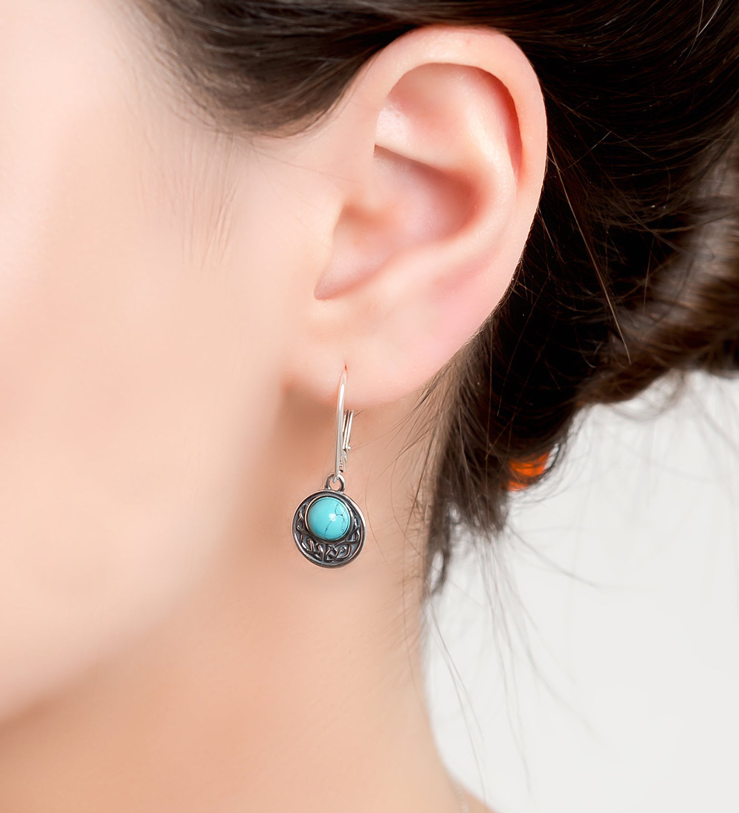 Dreamcatcher Drop Earrings in Silver, Turquoise and Onyx