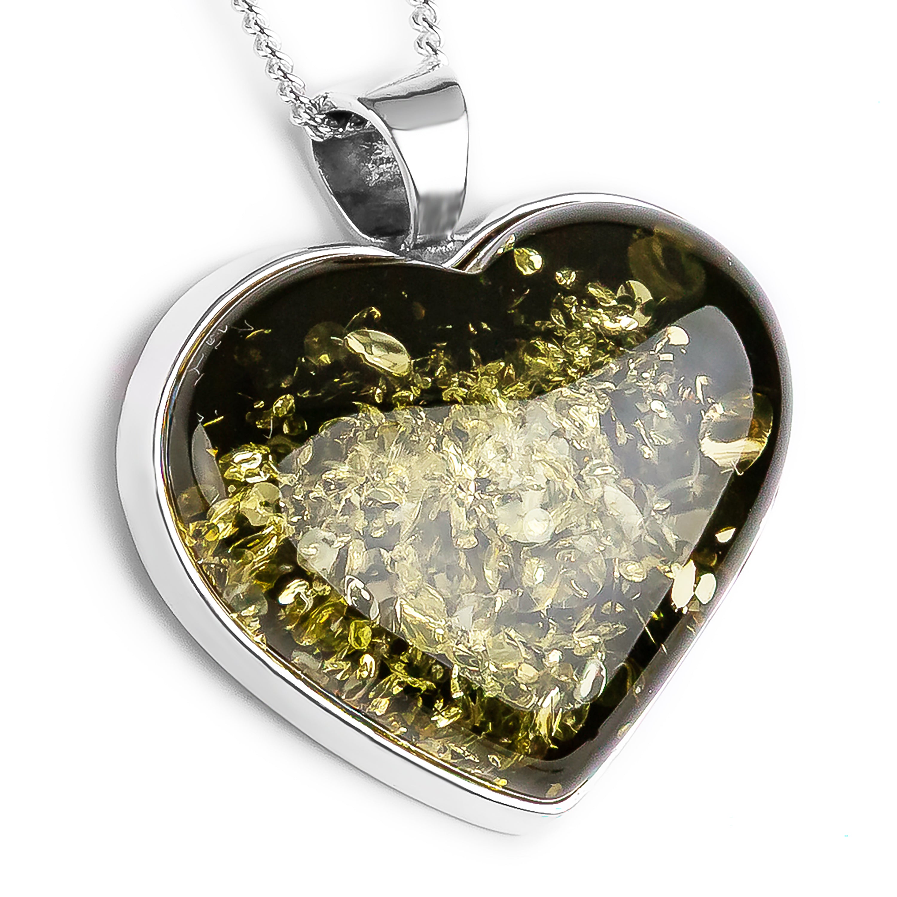Heart Shape Green Amber and Silver Necklace - Natural Designer Gemstone