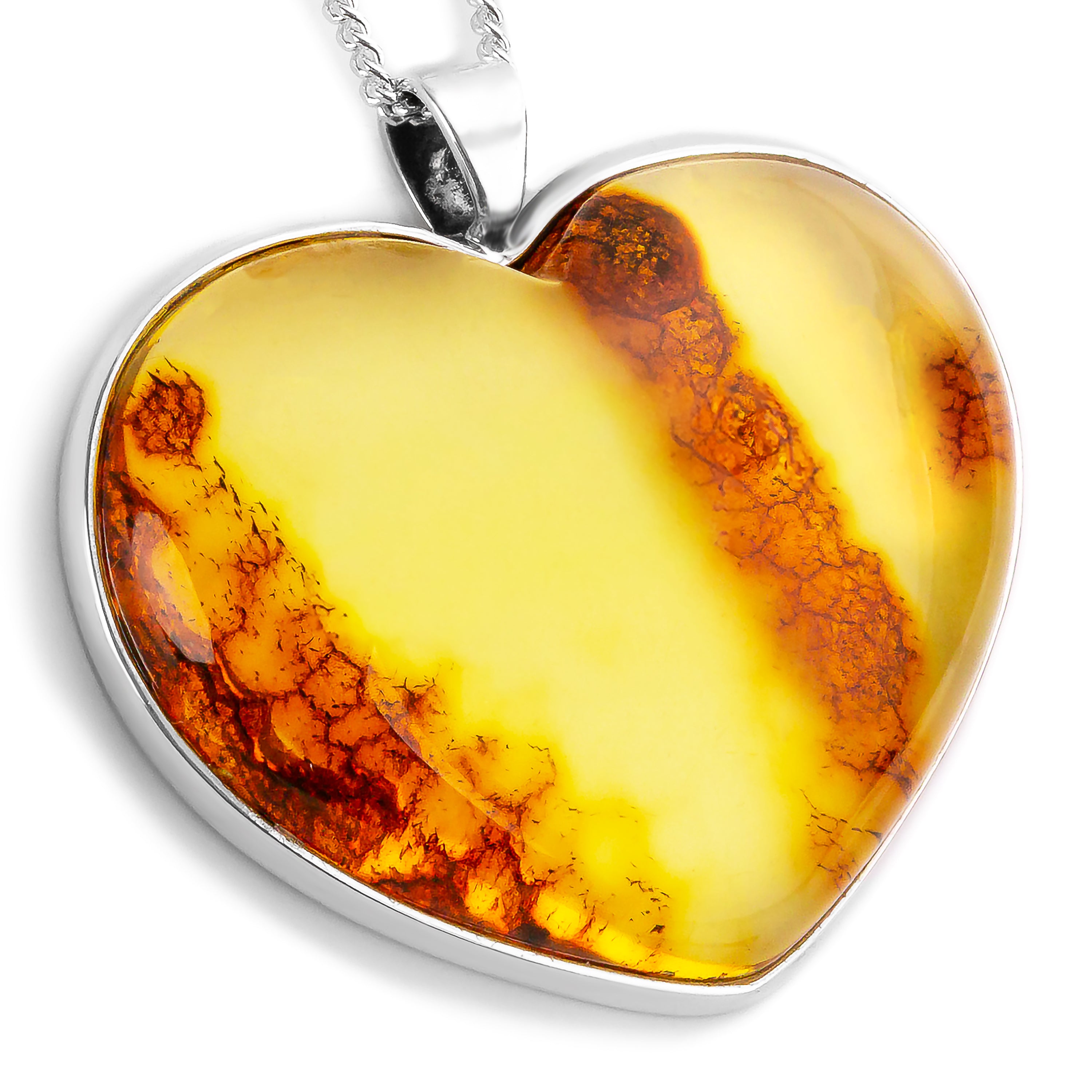 So Natural 3D Baltic Amber and Silver Heart Necklace - Designer Gemstone