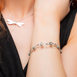 Carefully handcrafted in 925 silver and adorned with natural Dalmatian Jasper gemstones spaced evenly across entwined silver wire. Finished with miniature silver beads between each of the stones. Complete with a bolt ring clasp for secure and easy fastening.