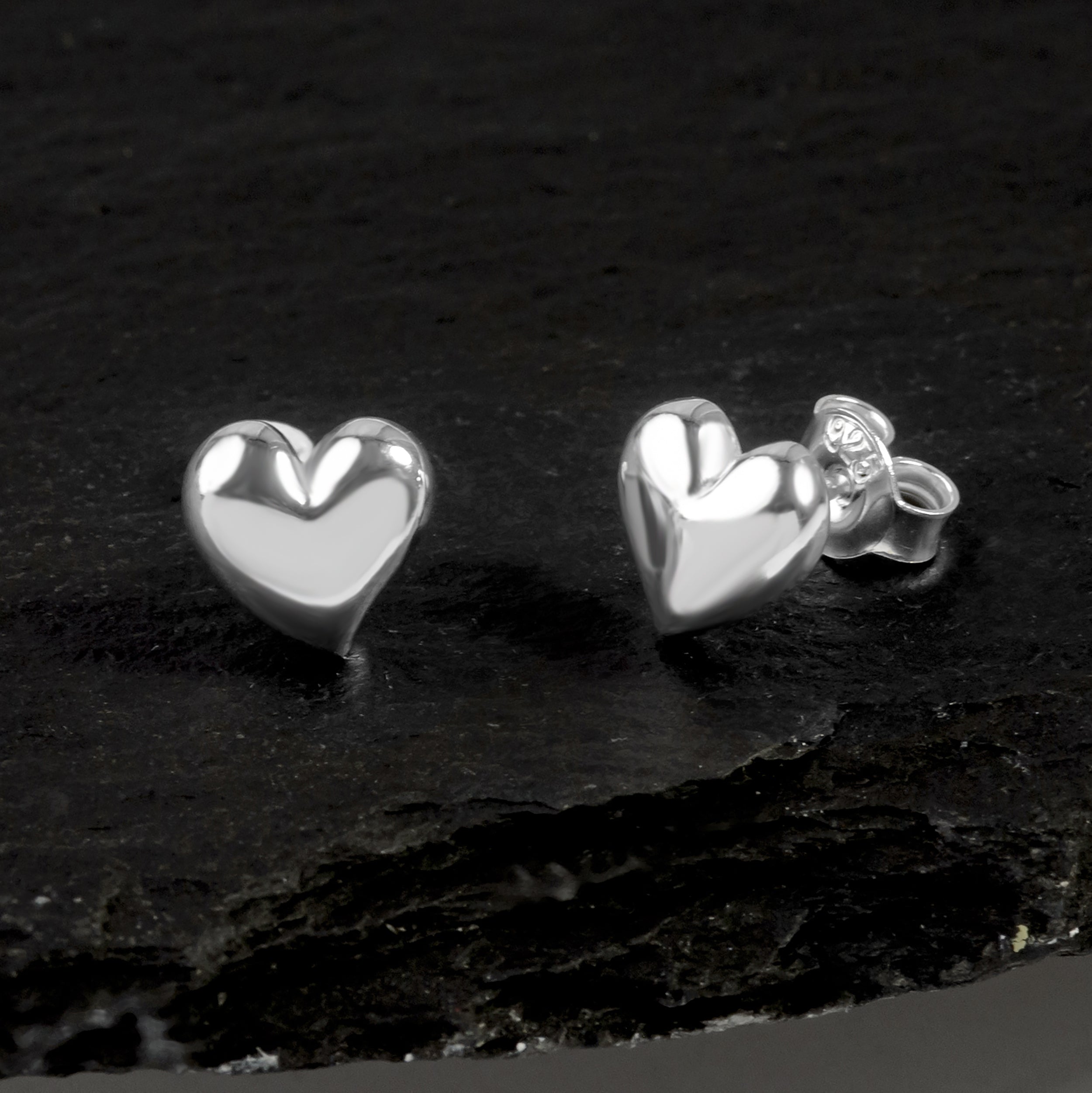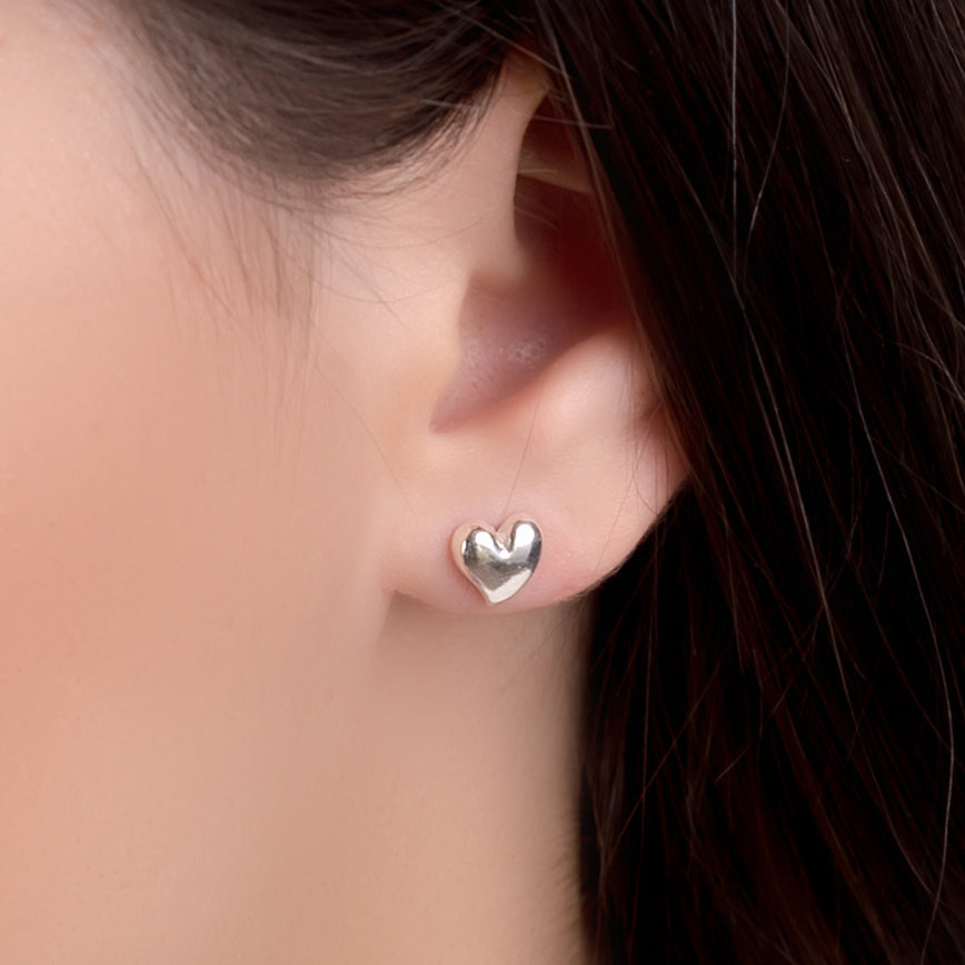Handcrafted in 925 silver, these delicate earrings have carefully shaped into a beautiful an asymmetrical heart shape. Finished in highly polished silver.