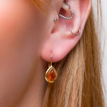 Crafted in solid 925 silver and 24ct Gold plating, each earring has a single teardrop shaped genuine Baltic Amber gemstone. With a solid silver open hook and delicate design, these earrings are ideal for all day wearing.