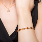 Handcrafted in solid 925 silver with 24ct Gold plating, this bracelet is adorned with 11 genuine Baltic Amber gemstones which have been carefully cut and polished into a teardrop shape. Each stone is set and linked together in silver.