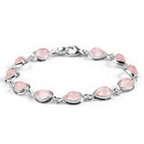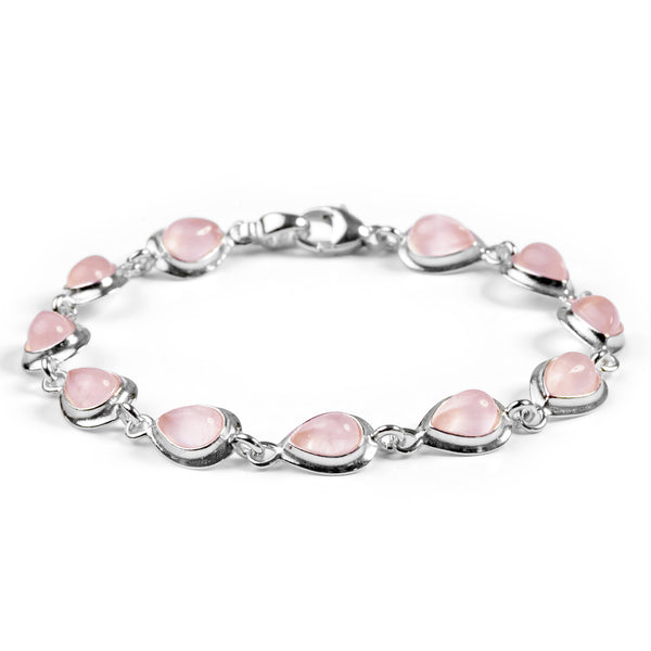Handcrafted in solid 925 silver, this bracelet is adorned with 11 beautiful Light Pink Quartz gemstones which have been carefully cut and polished into a teardrop shape. Each stone is set and linked together in silver.