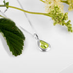 Crafted in a teardrop shape, the natural Peridot gemstone is set into a 925 Sterling Silver mount. With a solid silver chain, it completes this necklace perfectly to suit every occasion.
