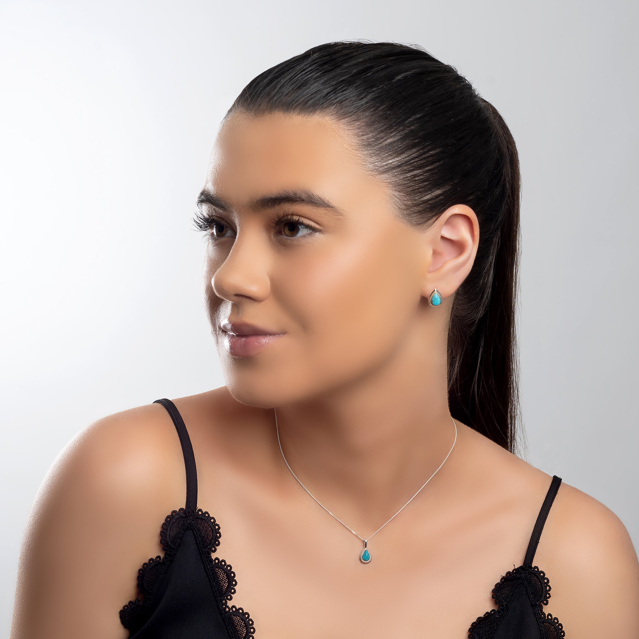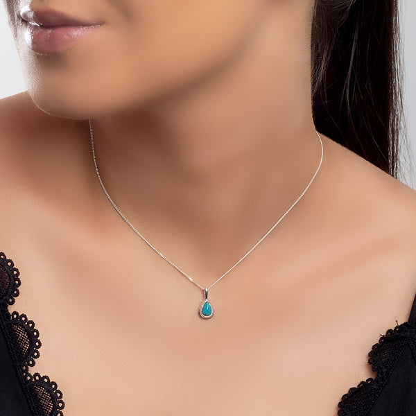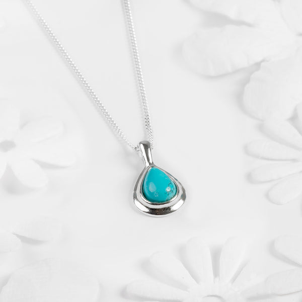 Crafted in a teardrop shape, the Turquoise stone is set into a 925 Sterling Silver mount. With a solid silver chain, it completes this necklace perfectly to suit every occasion.