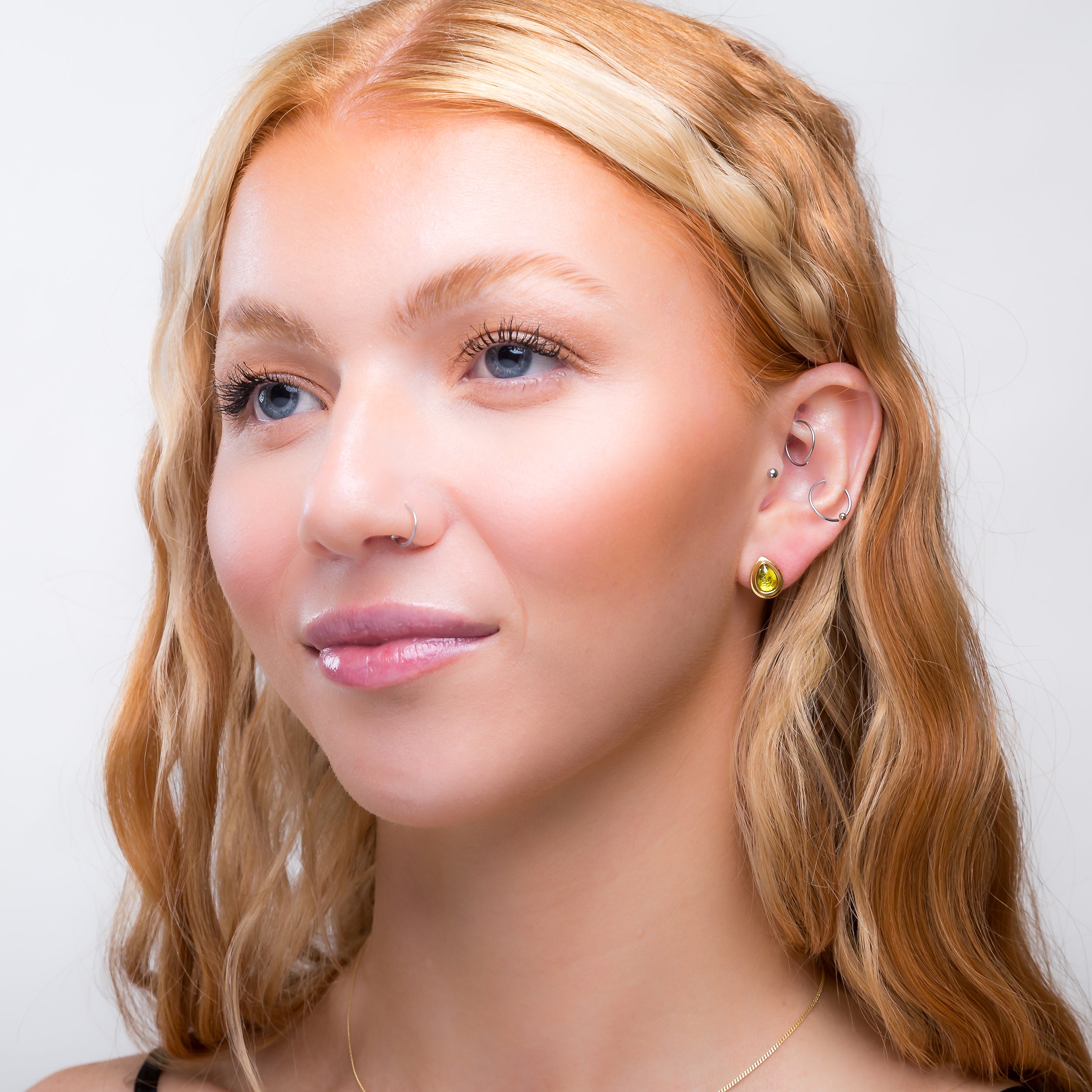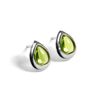 Classic Teardrop Stud Earrings in Silver with 24ct Gold & Peridot