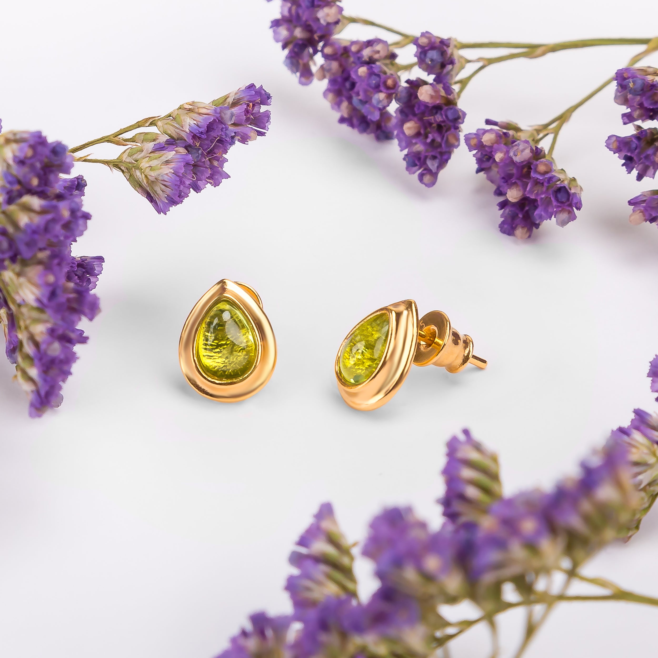Crafted in solid 925 silver with 24ct Gold plating, each earring has a single teardrop shaped Peridot gemstone. With a solid gold plated stem, secure butterfly back and delicate design, these earrings are perfect of all day wearing.