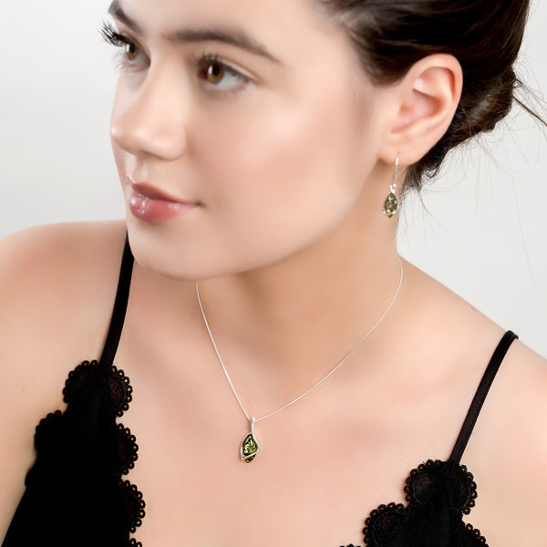 Available in dazzling Green Amber and warm toned Cognac Amber. There is also a matching bracelet and earrings, so why not spoil that someone special and get the set.