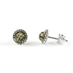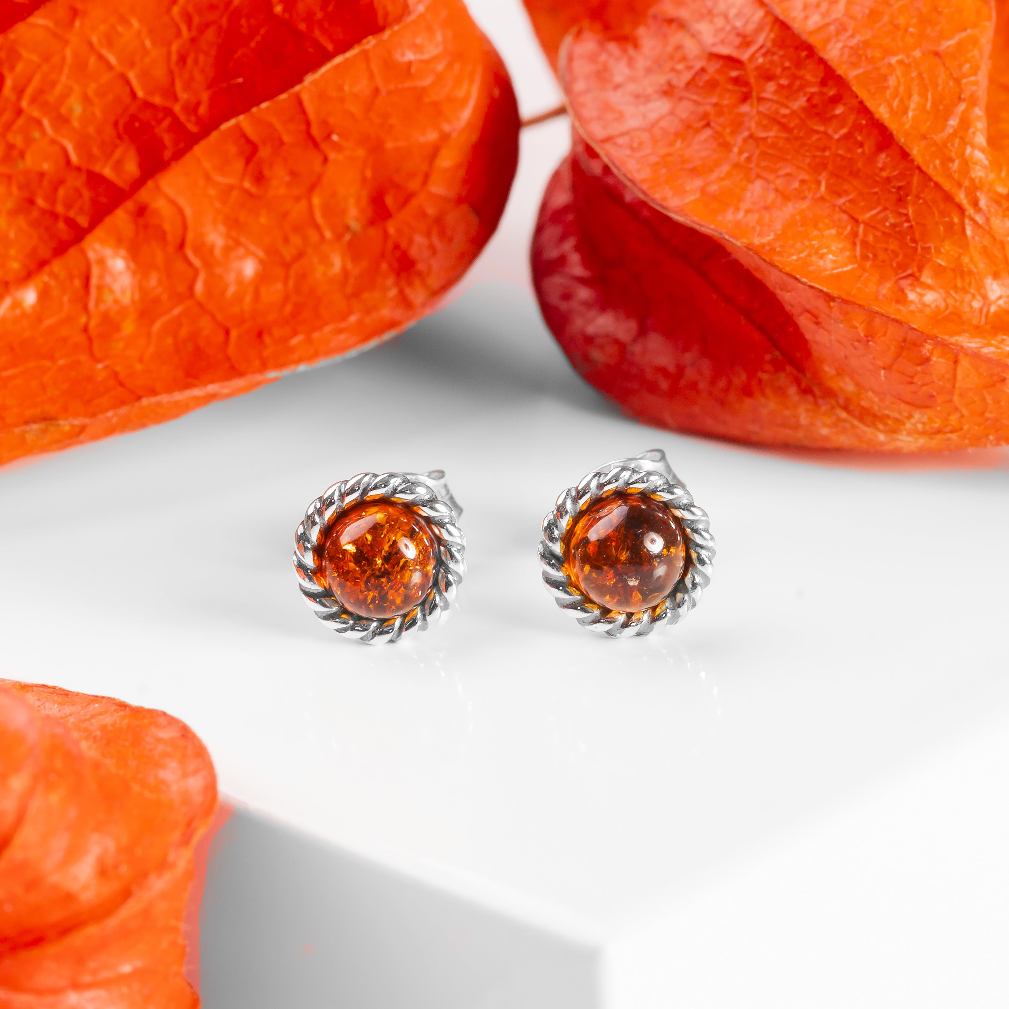 Rope Edge Stud Earrings in Silver and Cognac Amber